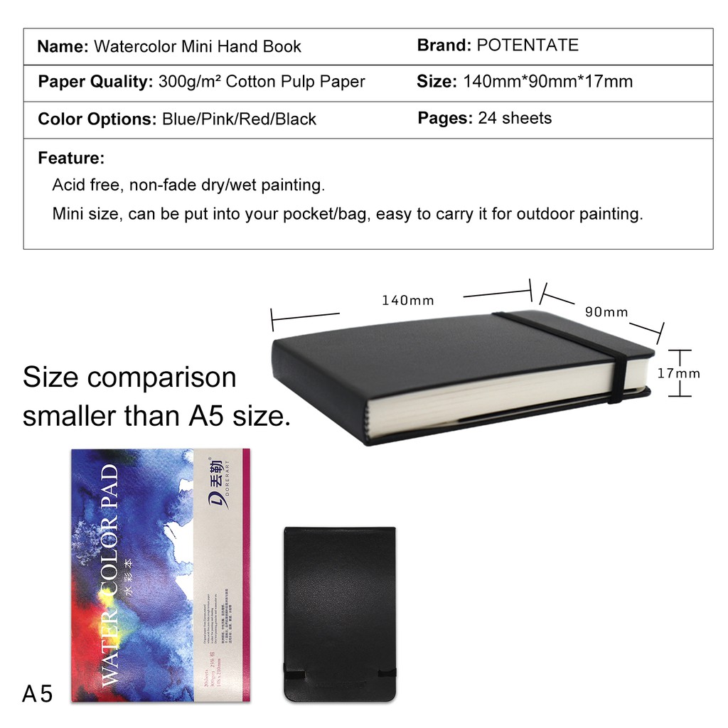 SeamiArt สมุดวาดภาพ สำหรับลงสีน้ำ ขนาดเล็ก 300 แกรม 24 แผ่น มีให้เลือก 4 สี