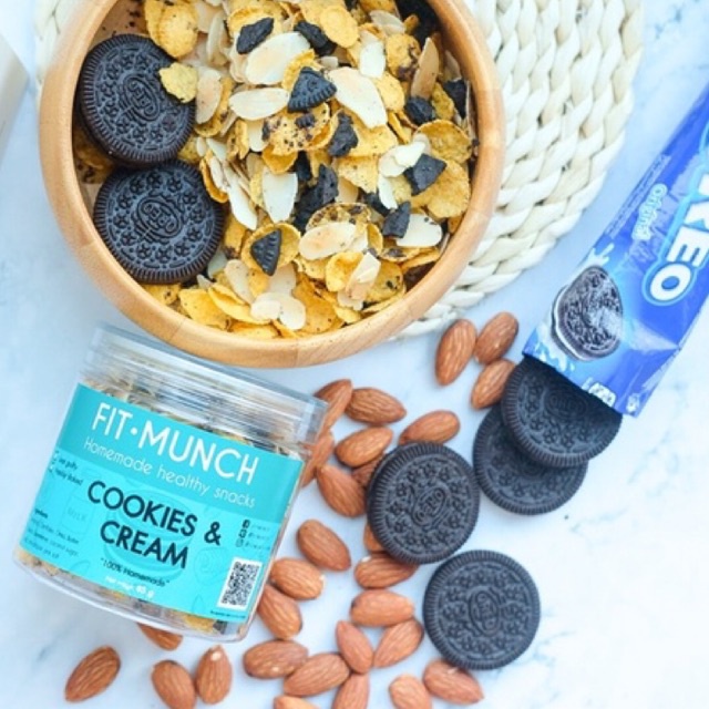 อัลมอนด์และคอร์นเฟลกอบกรอบผสมคุกกี้แอนด์ครีม 85 กรัม