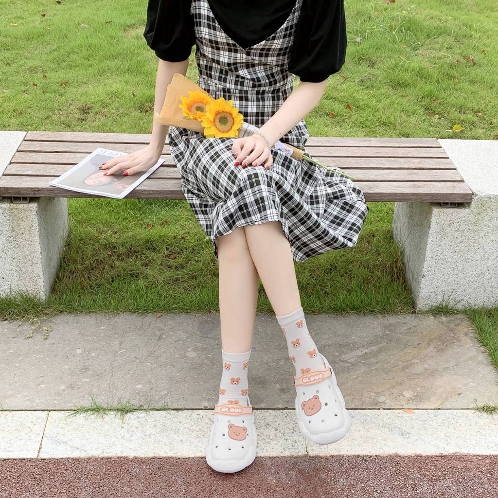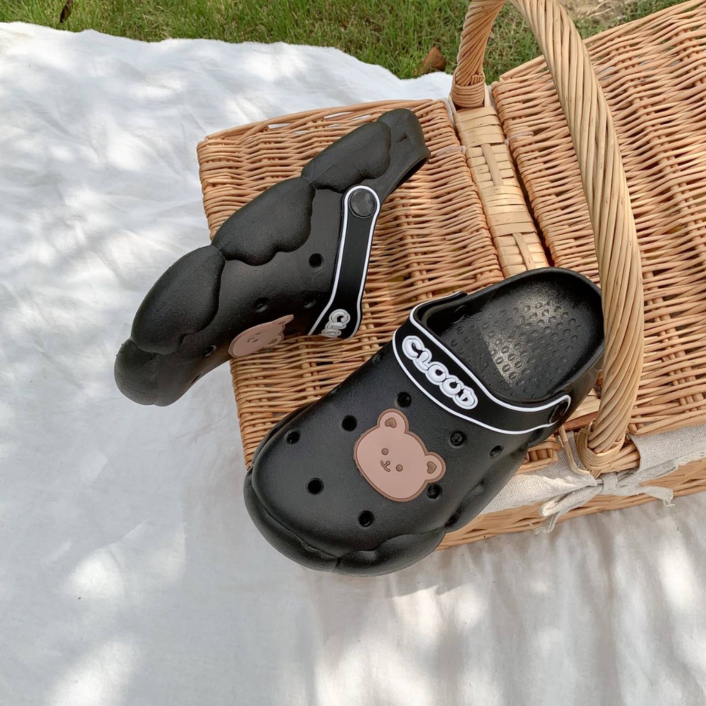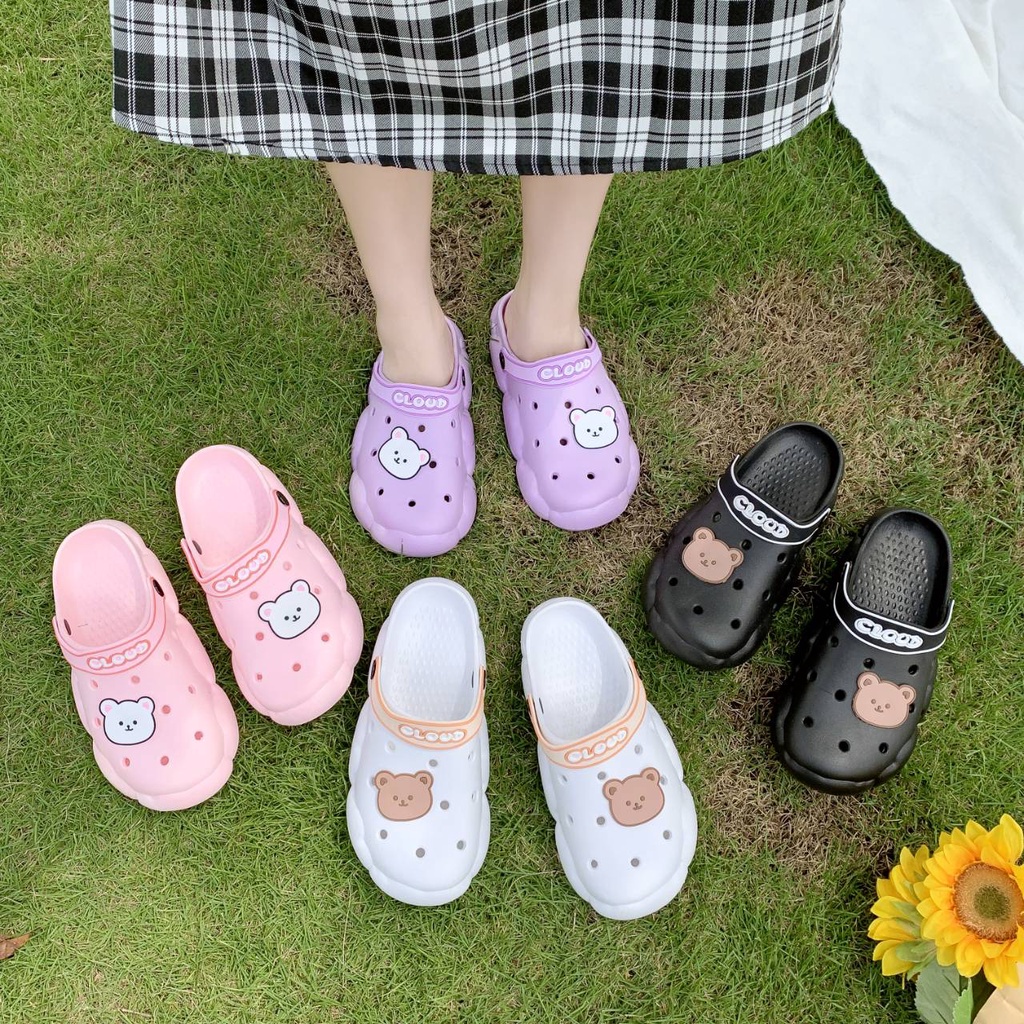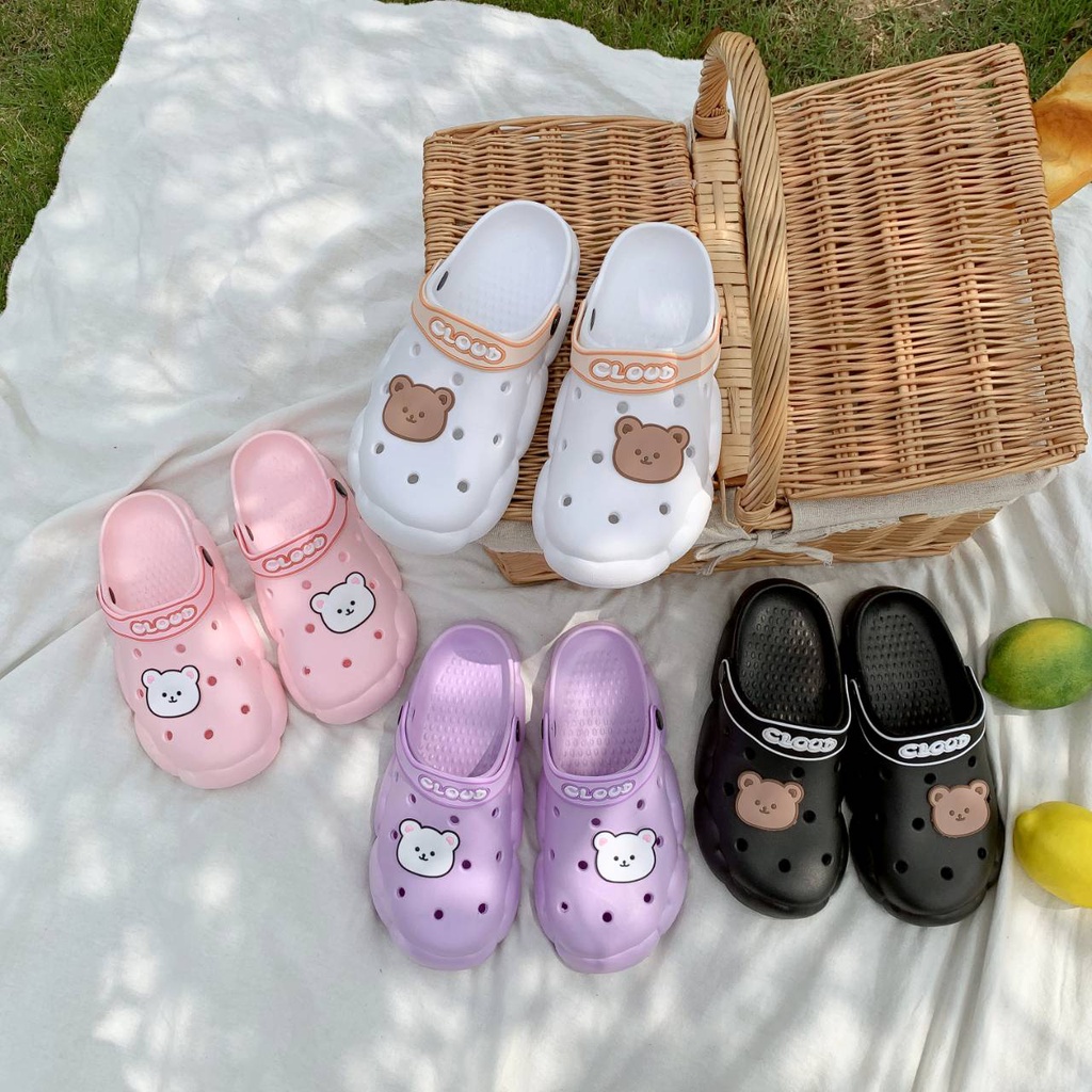 รองเท้าแตะหัวโตแฟชั่น ลายCLOUD พร้อมตัวติดน้องหมีสุดน่ารัก ใส่ได้ 2 แบบ มี 4 สี 888