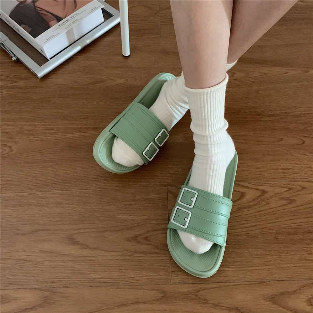 รองเท้าแตะแฟชั่น รองเท้าแตะยางซิลิโคนตกแต่งสายคาดเข็มคัด สุดเก๋ มี 3 สี 2L2