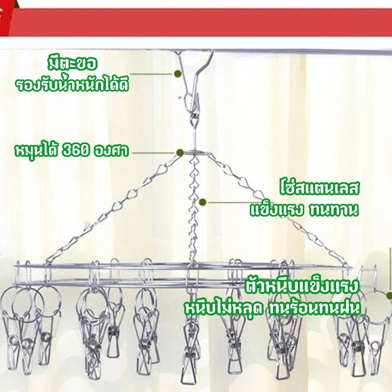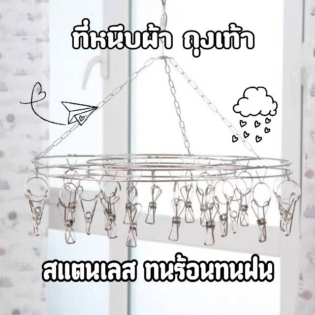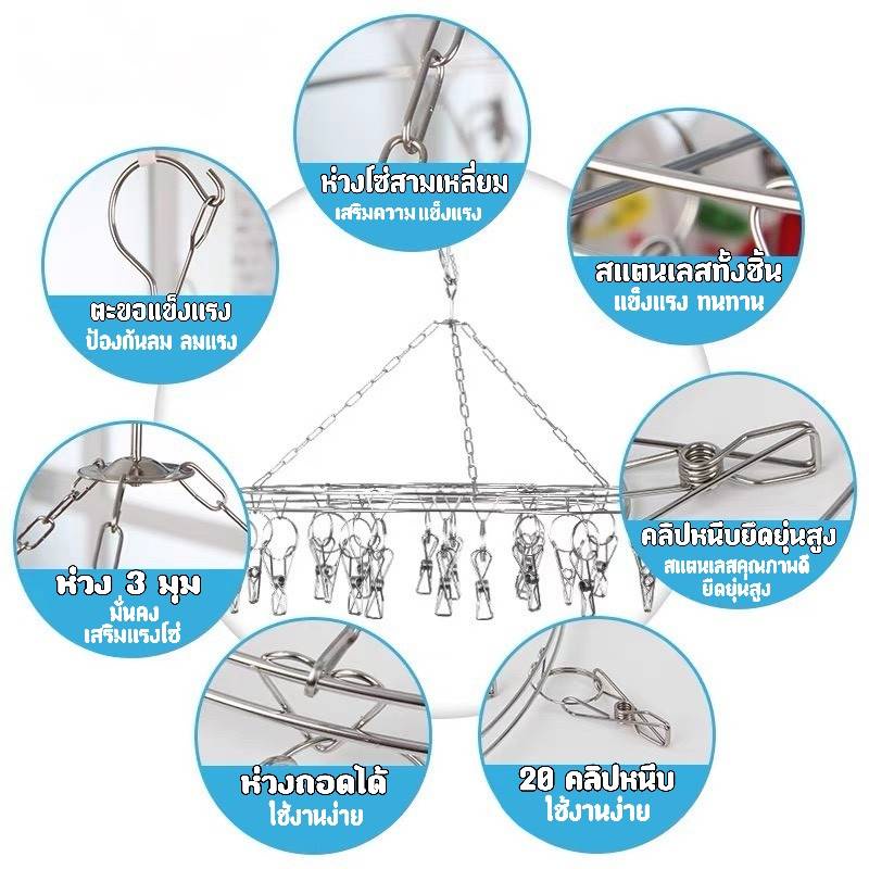 โค้ด RUS8X6 ลด 15% สูงสุด 30.ที่หนีบผ้าวงกลม 20ตัวหนีบ วัสดุทำจากสแตนเลส 201 เส้นผ่านศูนย์กลาง 28.5 ซม. 🔥🔥