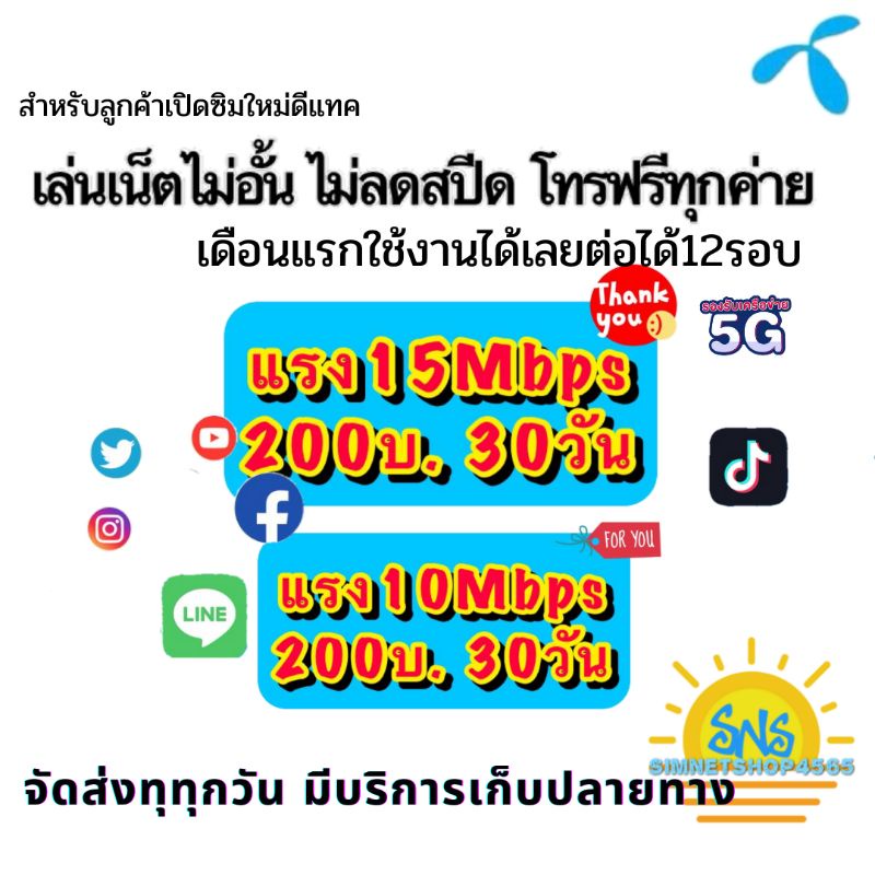 (ใช้ฟรีเดือนแรก)ซิมเทพ ดีแทค เน็ตไม่อั้น 10 15 100mbps ไม่ลดสปีด+โทรฟรีทุกค่าย