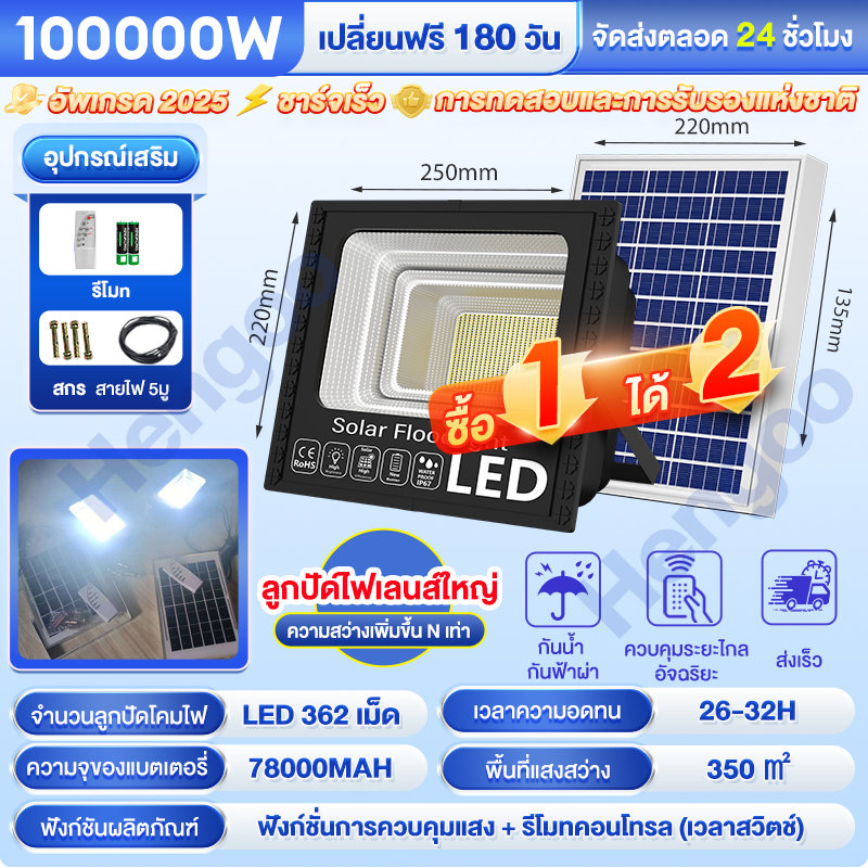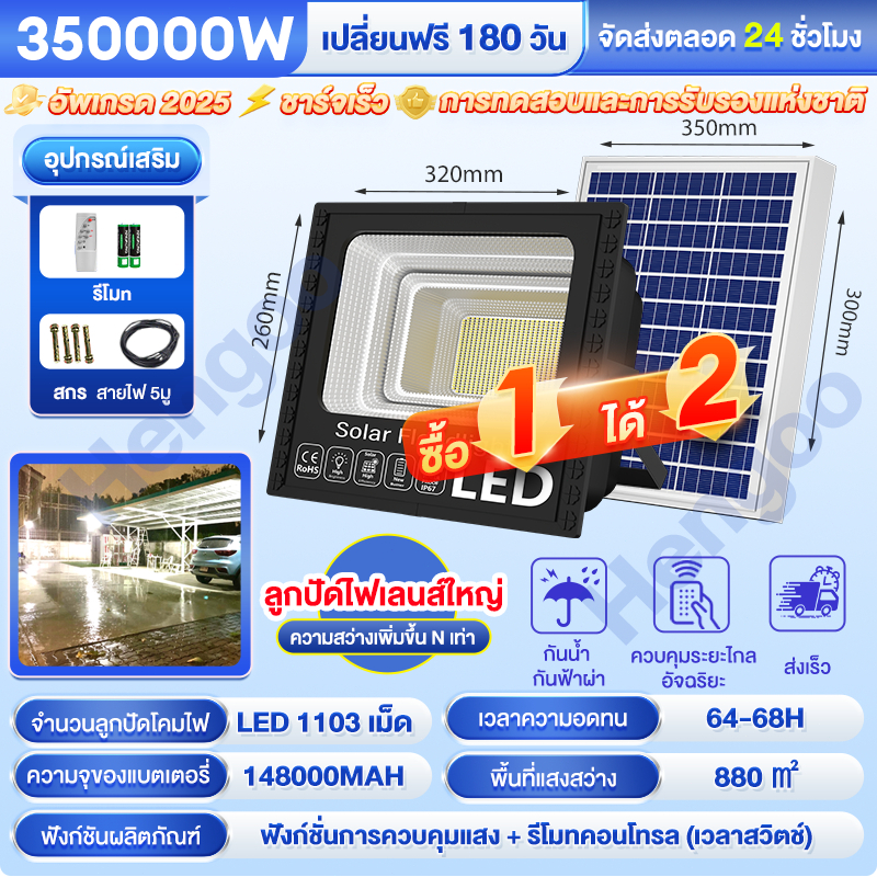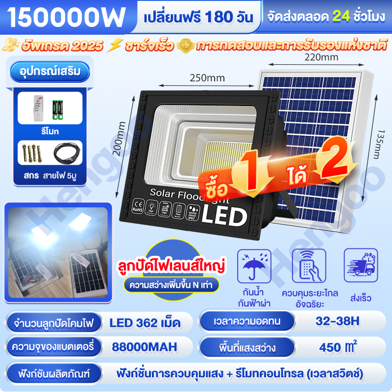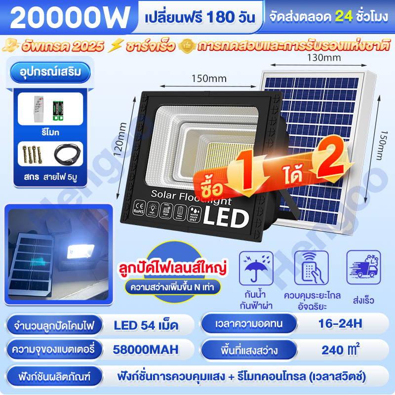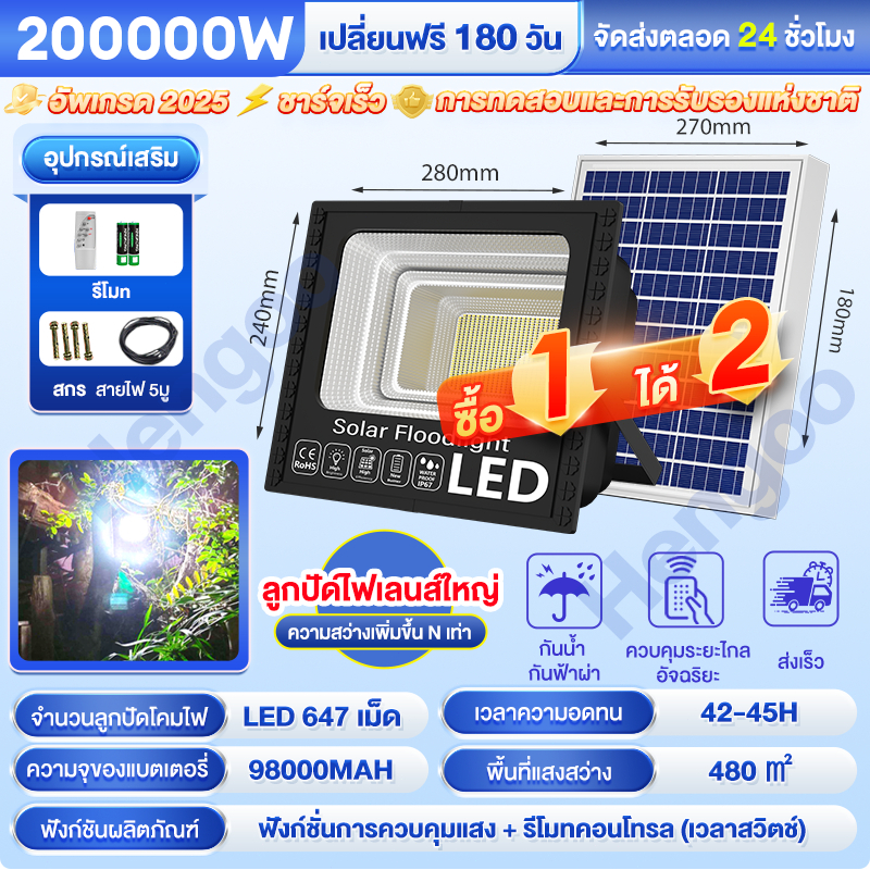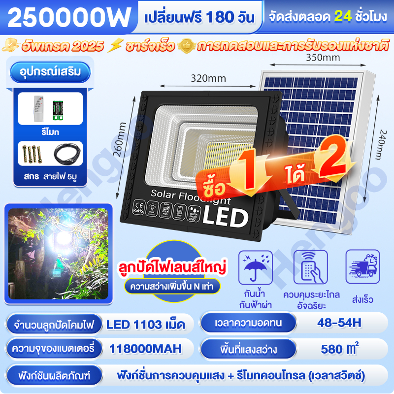 ไฟโซล่าเซลล์ ไฟถนน โซล่าเซลล์ ซื้อ 1 แถม 1 โซล่าเซลล์สปอตไลท์ ไฟสปอร ์ตไลท์ LED IP67 เปิดปิดอัตโนมัติ