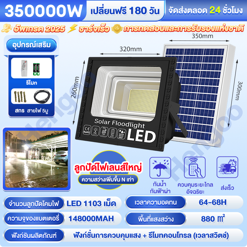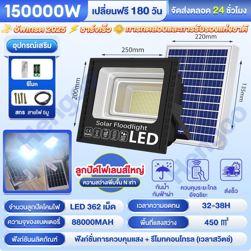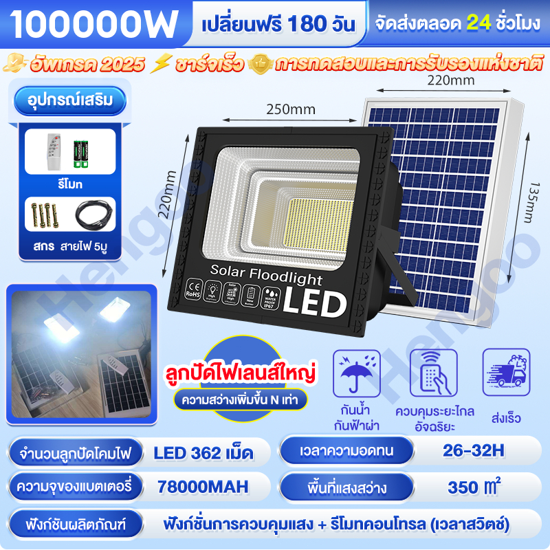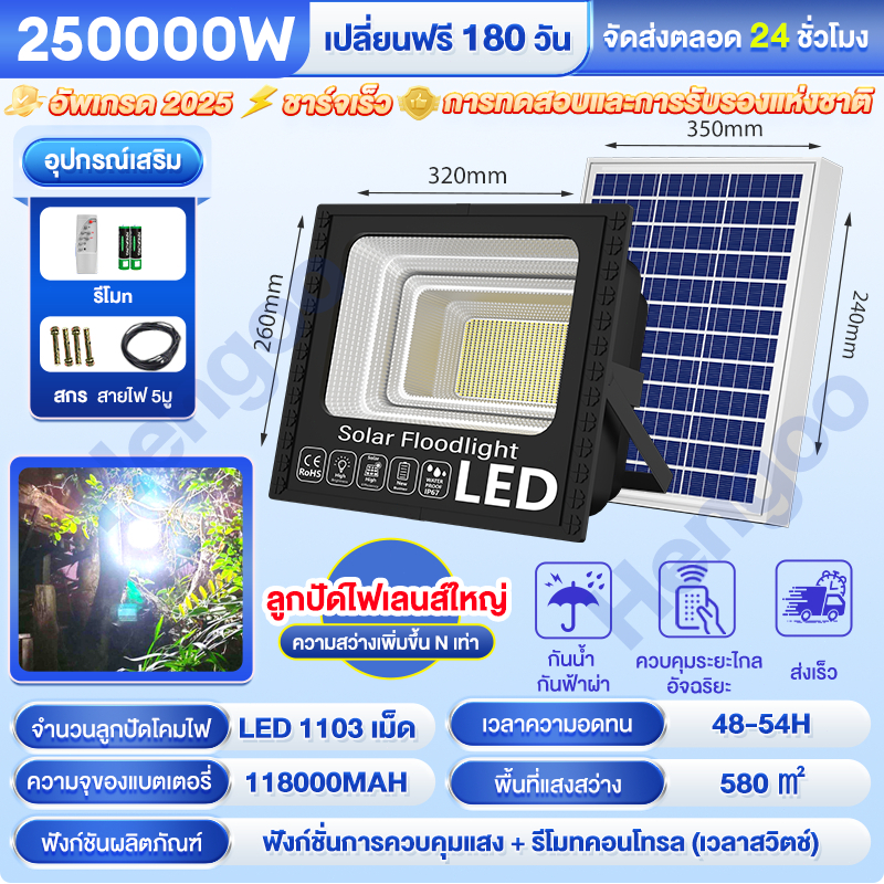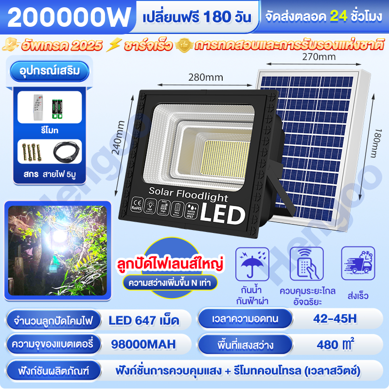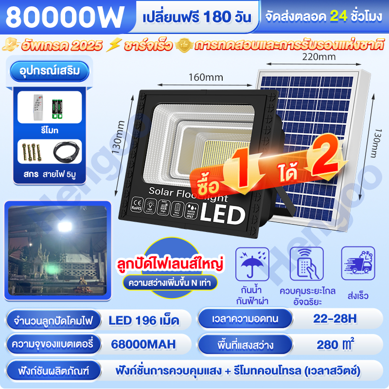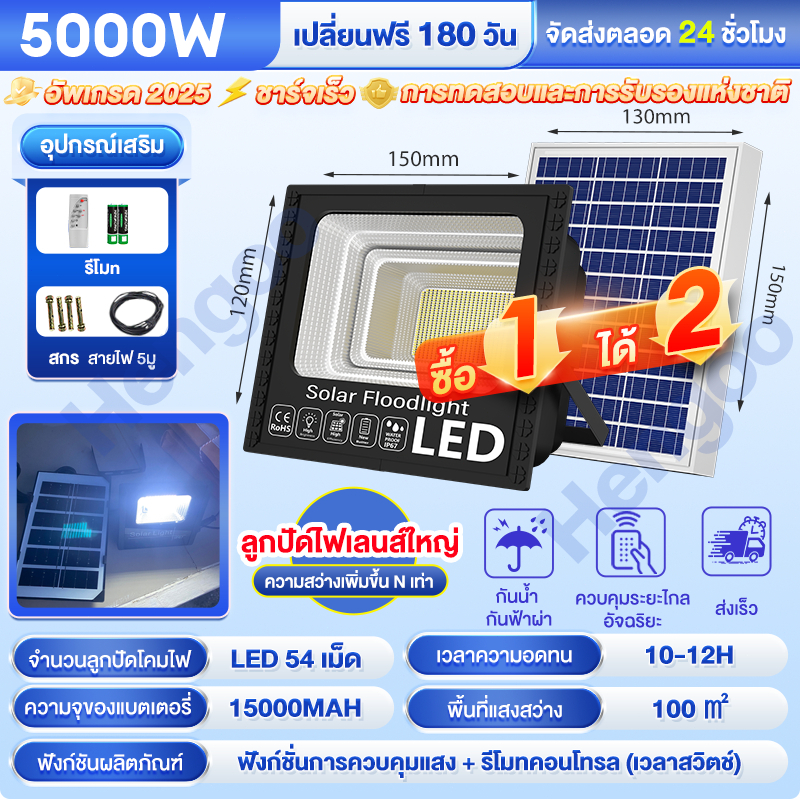 ไฟโซล่าเซลล์ ไฟถนน โซล่าเซลล์ ซื้อ 1 แถม 1 โซล่าเซลล์สปอตไลท์ ไฟสปอร ์ตไลท์ LED IP67 เปิดปิดอัตโนมัติ