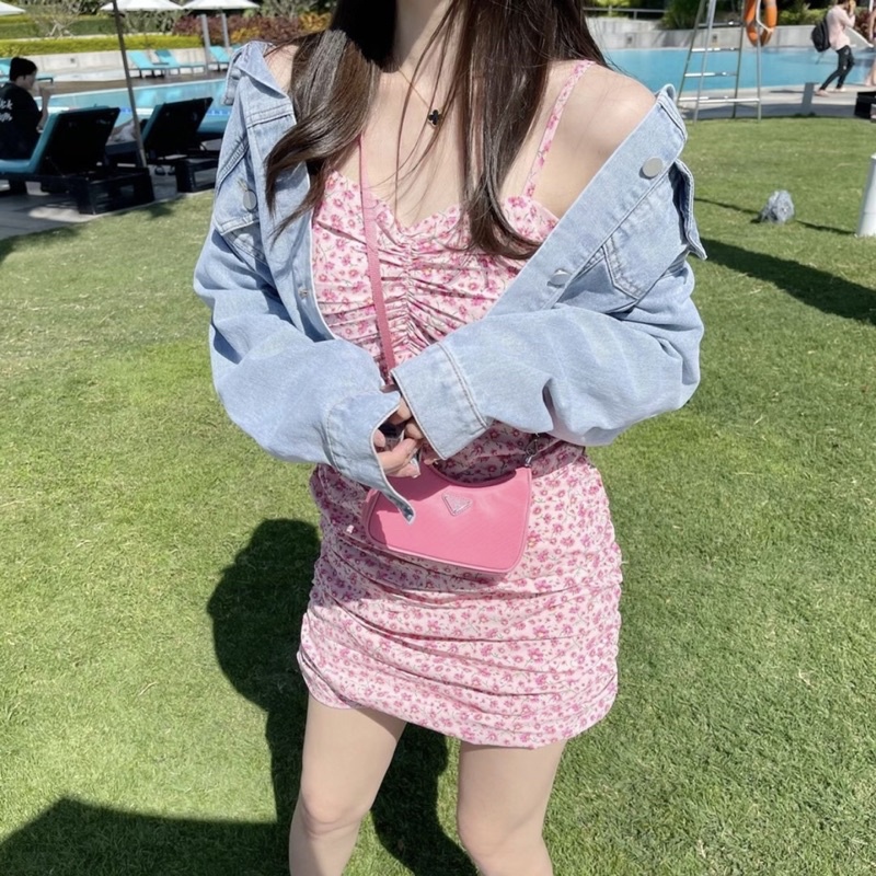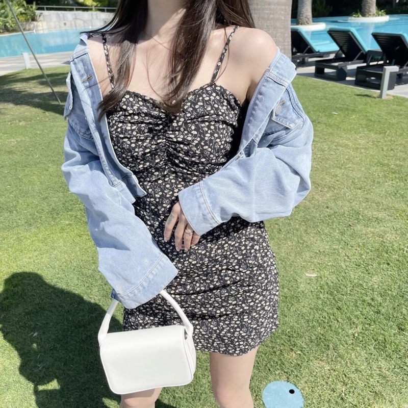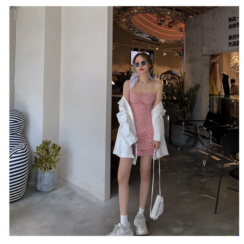 ManTai เดรสสายเดี่ยวสั้น เข้ารูป พร้อมส่ง 3 สี
