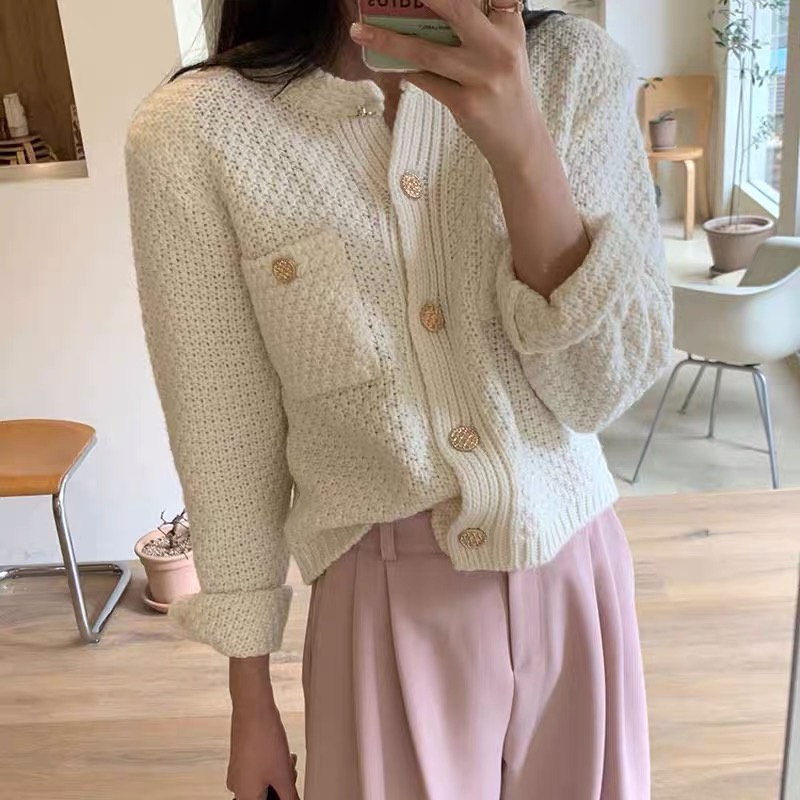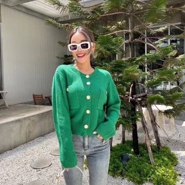 MT เสื้อคาดิแกน เสื้อไหมพรม กระดุมทอง สไตล์เกาหลี ไหมพรมเกรดพรีเมียม