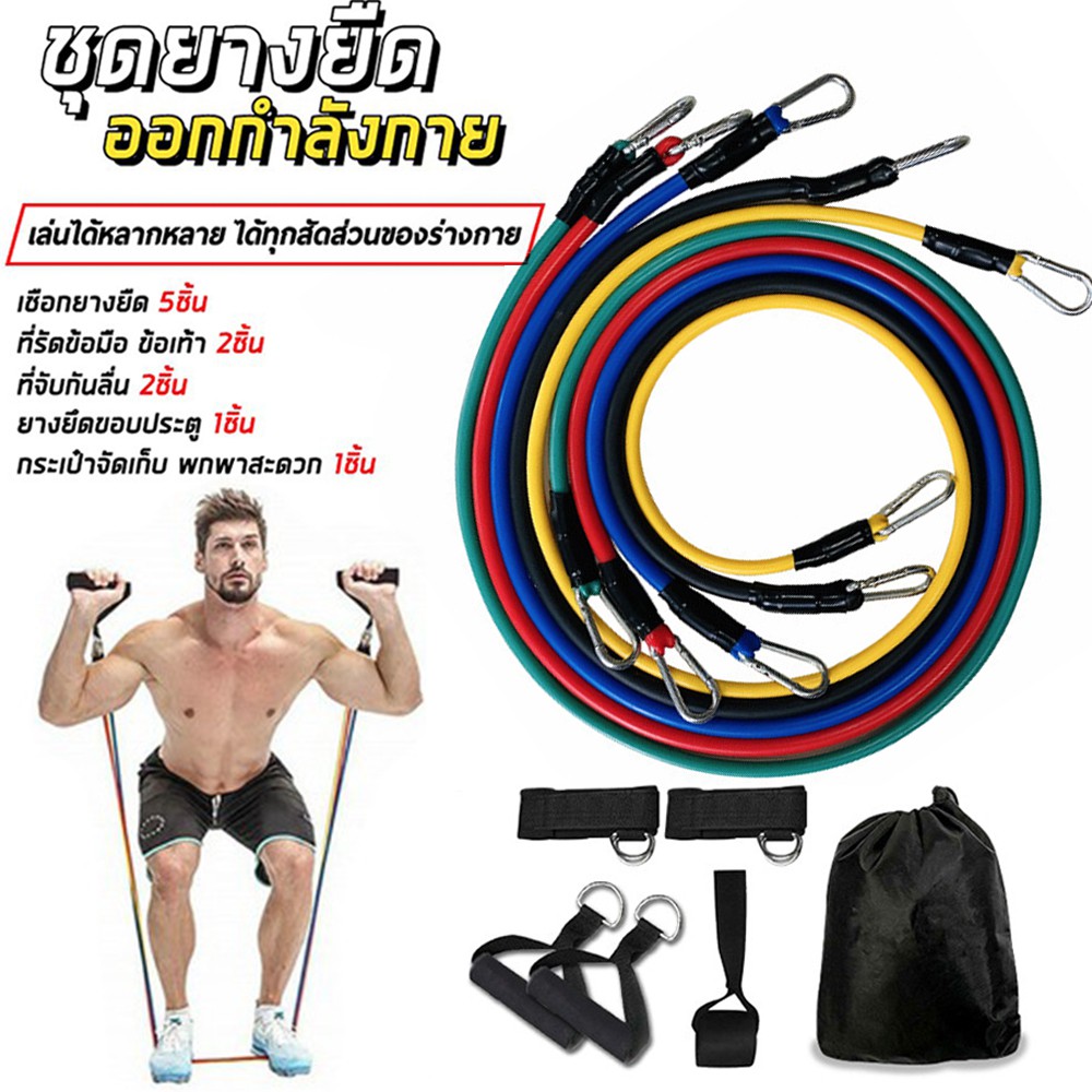 สายแรงต้าน ครบชุด ยางยืดออกกำลังกาย resistance band ครบชุด 11 ชิ้น สร้างกล้ามเนื้อ ออกกําลังกาย