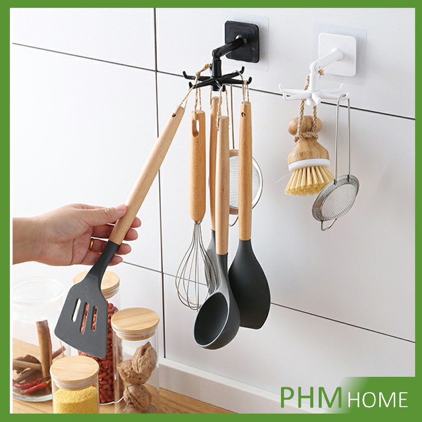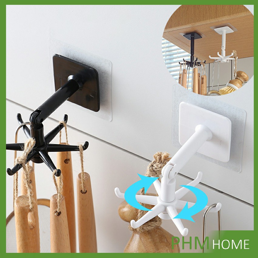 ที่แขวนติดผนัง 6 แฉก ตะขอติดเพดาน ติดผนัง ขอเกี่ยวหมุนได้ 360 ° Hexagonal self-adhesive hook