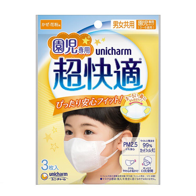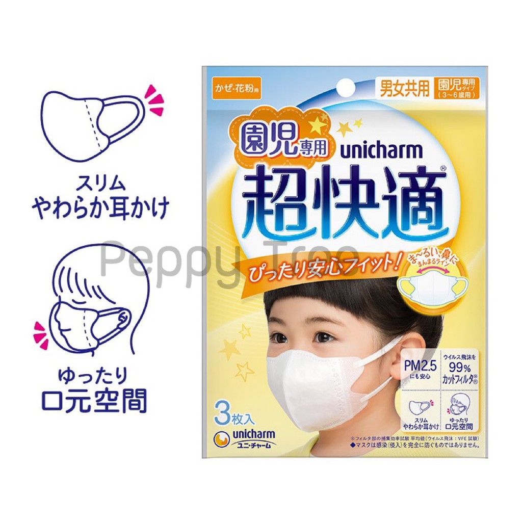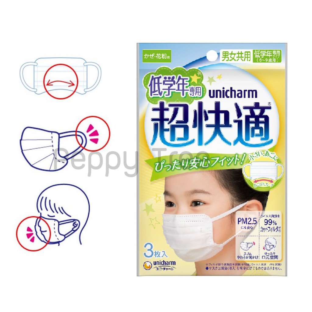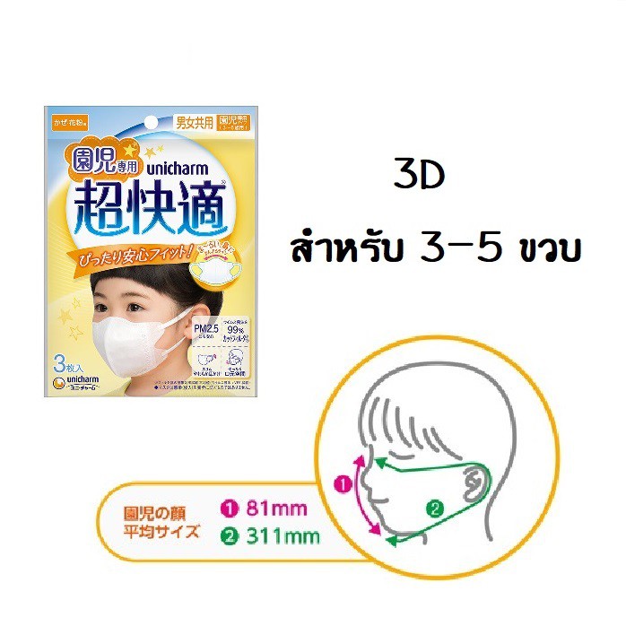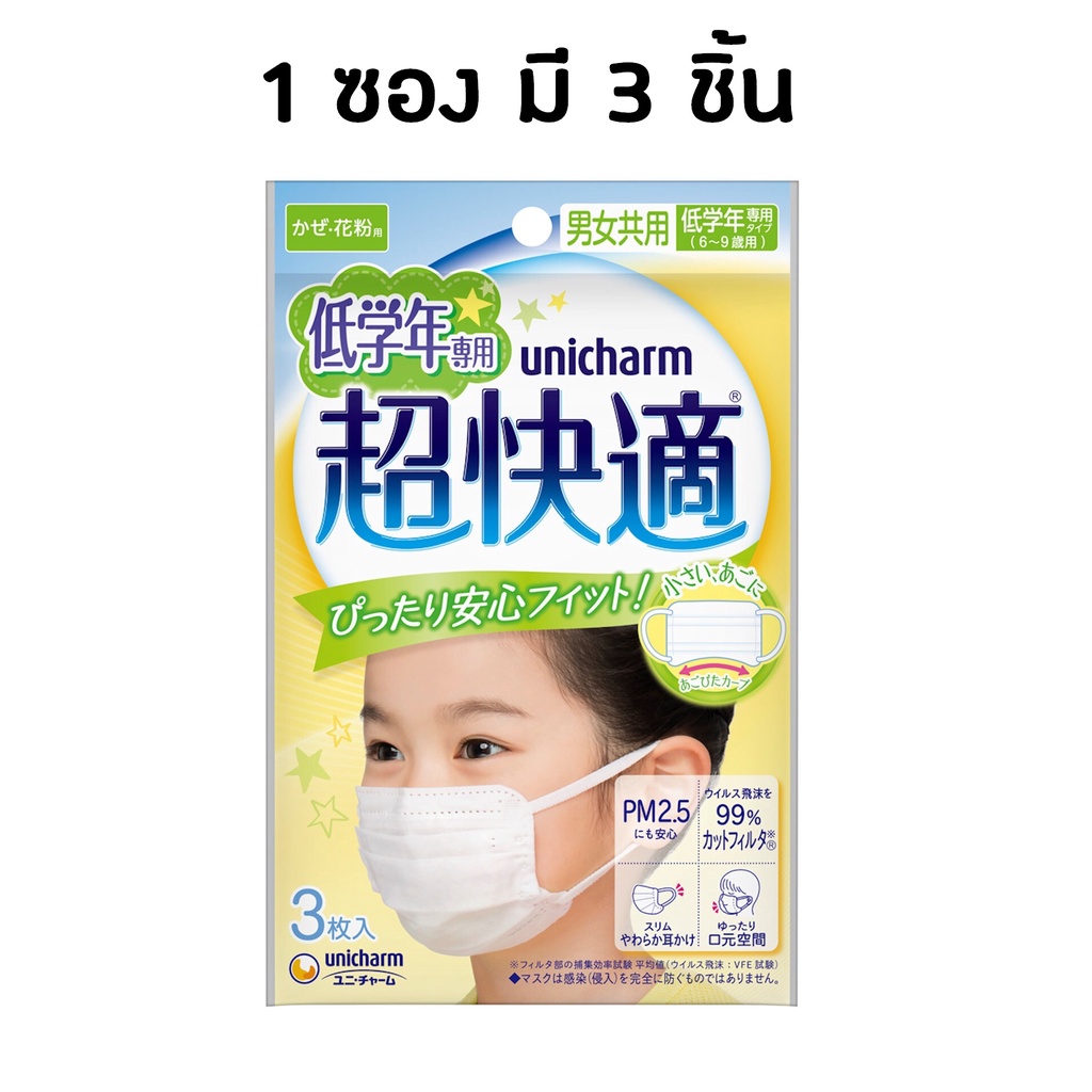[มีขนาดออกใหม่‼] Unicharm เด็ก 3-5 6-9 และ 9-12 ขวบ หน้ากาก 3d กันไวรัส PM2.5 แพค 3 ชิ้น หน้ากากอนามัยญี่ปุ่น