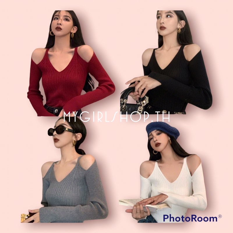 MYGRILSHOP.TH👑👑เสื้อถักเปิดไหล่เซ็กซี่🍋 N232
