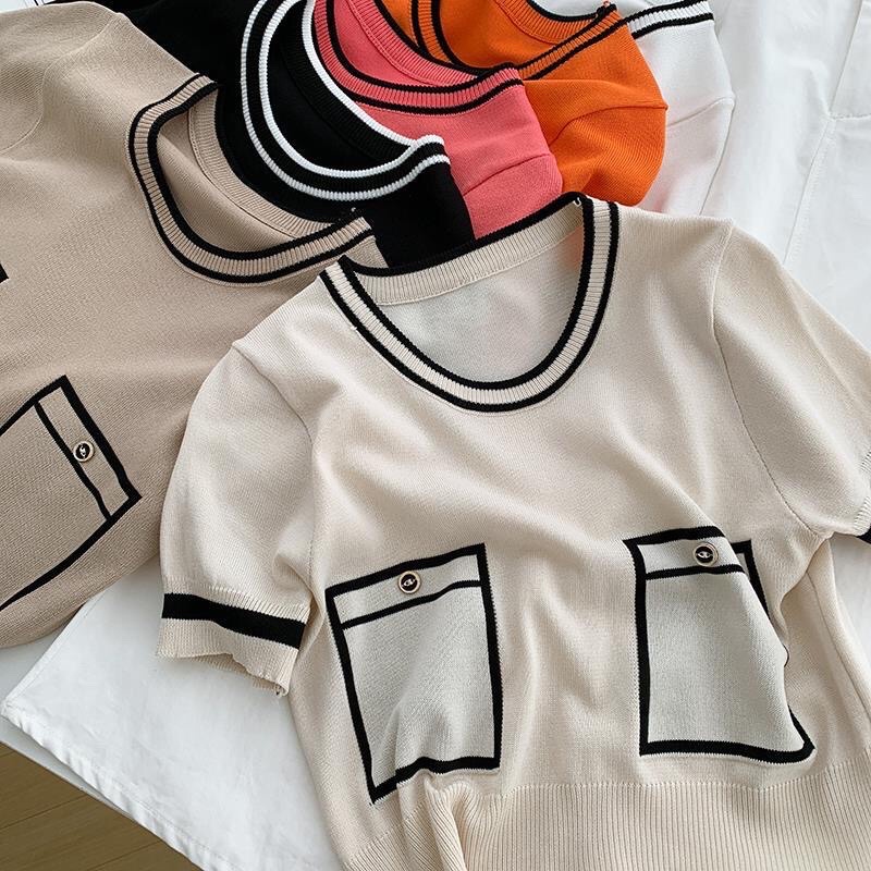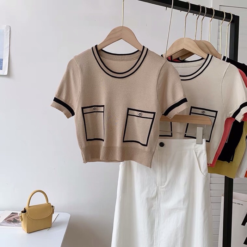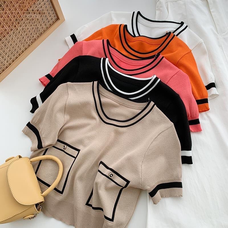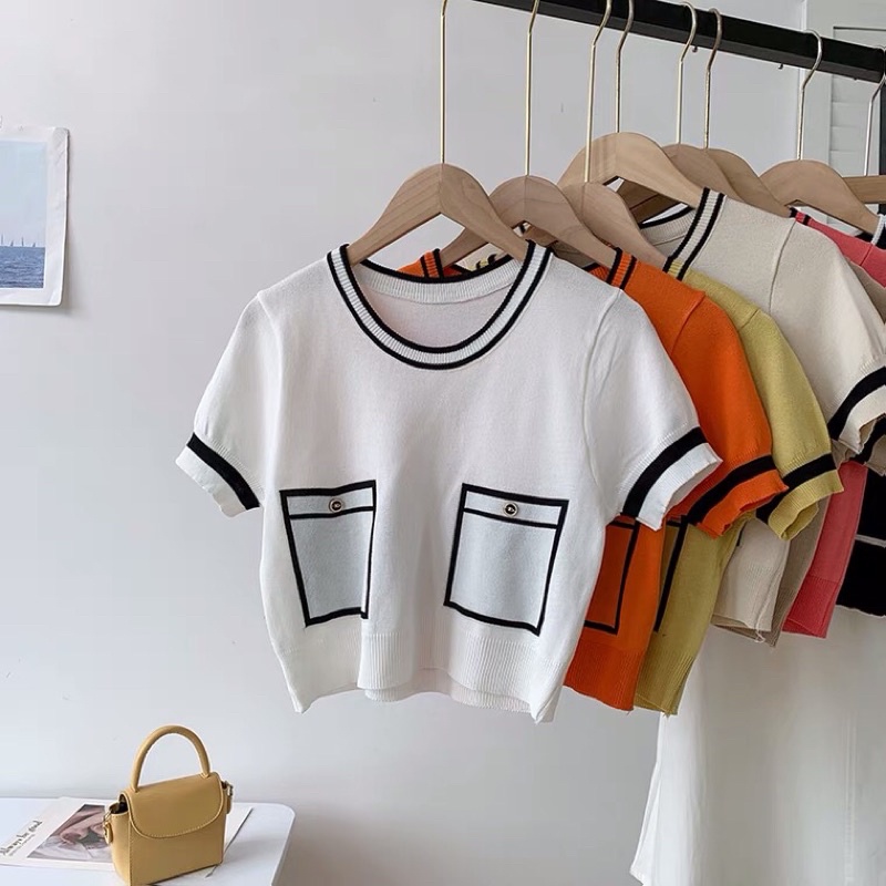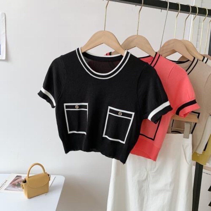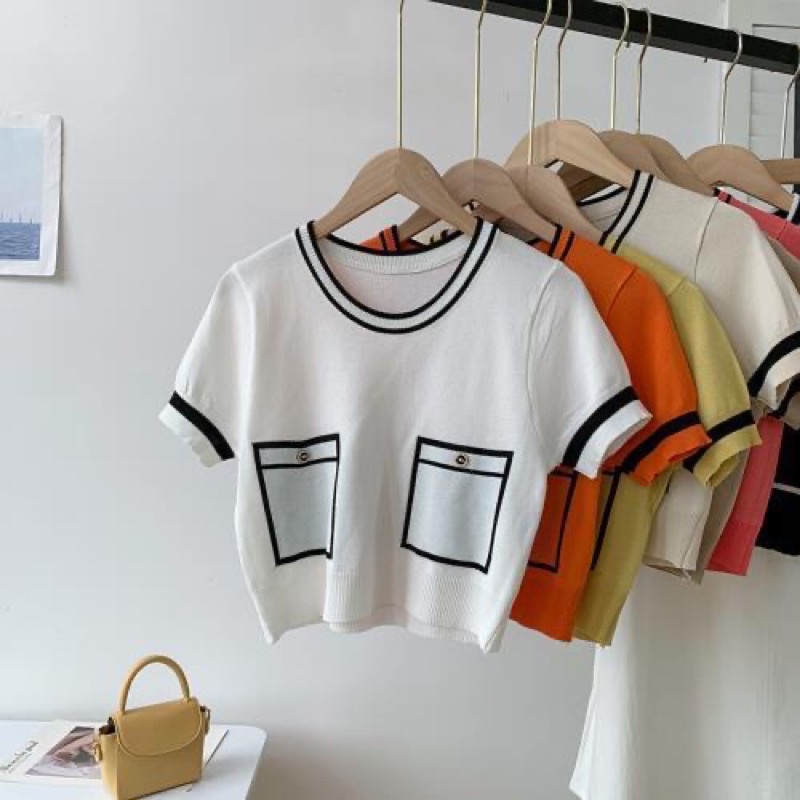 MYGRILSHOP.TH👑👑เสื้อคอกลมเส้นตัดขอบเป๋าคู่🌈🌈F856