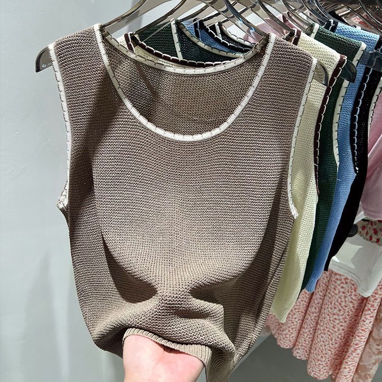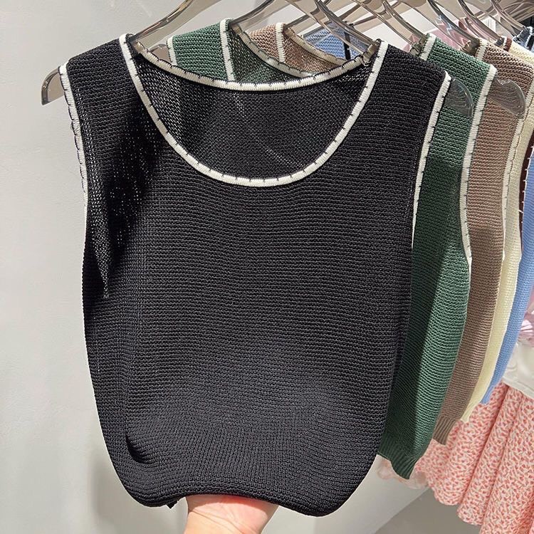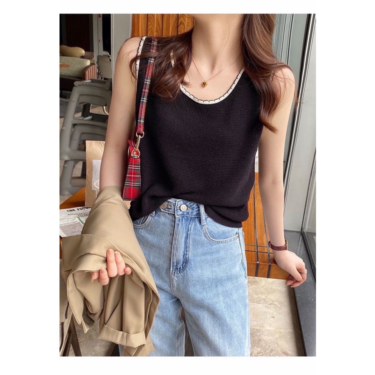 MYGIRLSHOP.THเสื้อแขนกุดสีพื้นตัดขิบ47176