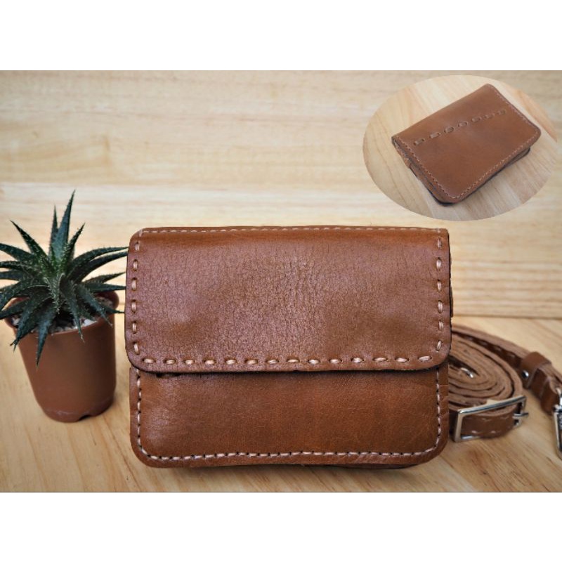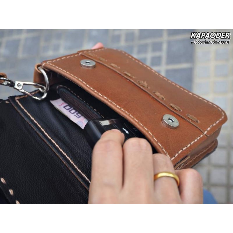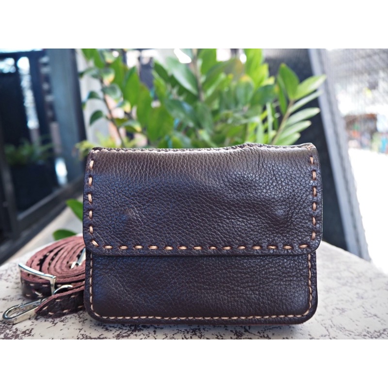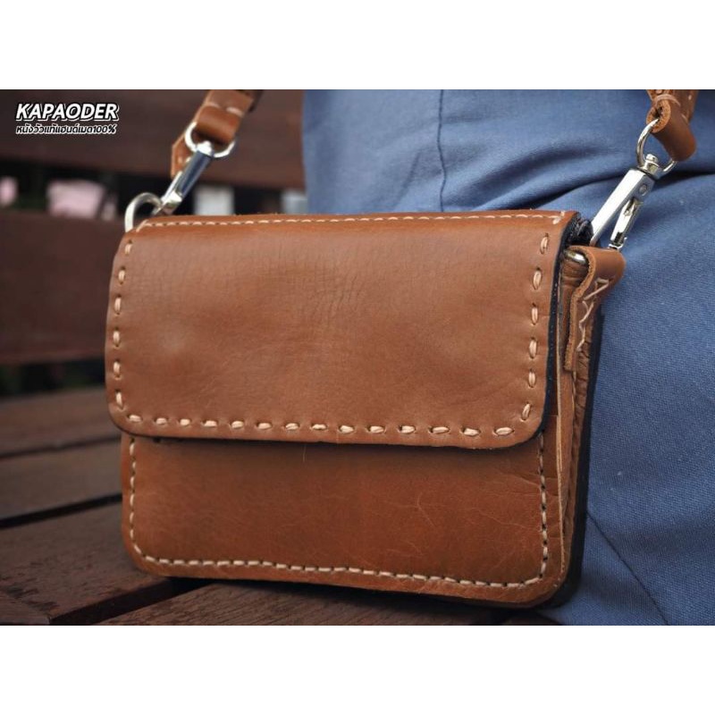 ใส่ Code:JANKPD45 กระเป๋าสะพานหนังแท้ รุ่นคุณนายโฮเล็ก กระเป๋าแฮนด์เมด