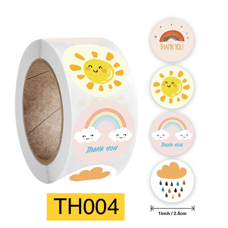ลายใหม่เยอะมาก ม้วนถูกสุด 🌟 พร้อมส่งในไทย🤝 500 ดวง 20 บาท สติกเกอร์ รูปยิ้มขอบคุณ thank you sticker แบ่งขาย/