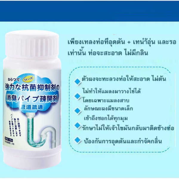 ผงล้างท่อ แก้ปัญหาท่ออุดตัน ผงสลายท่อตัน ผงล้างท่อตัน ดับกลิ่นท่อ ละลายเส้นผมคราบไขมันอุดตัน แบบขวด110g