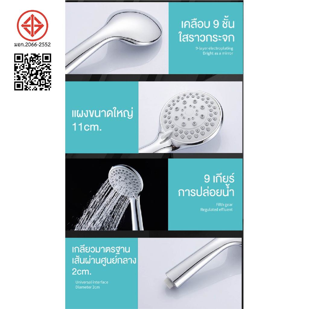 ฝักบัว ปรับระดับได้ 5 ระดับ ชุดฝักบัว ฝักบัวอาบน้ำ ห้องน้ำ ครบชุด หน้ากว้าง 11cm สวยงาม คงทน