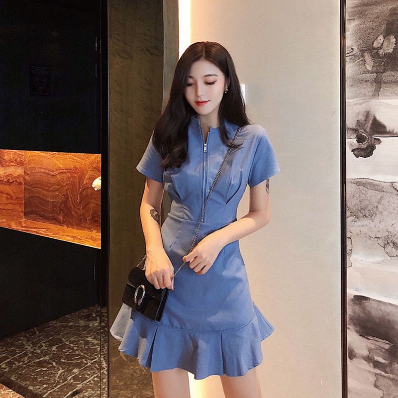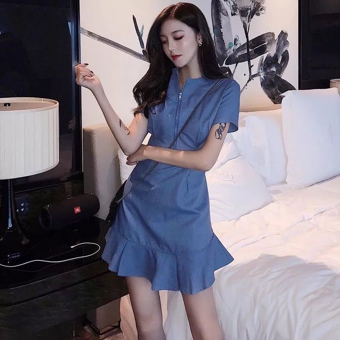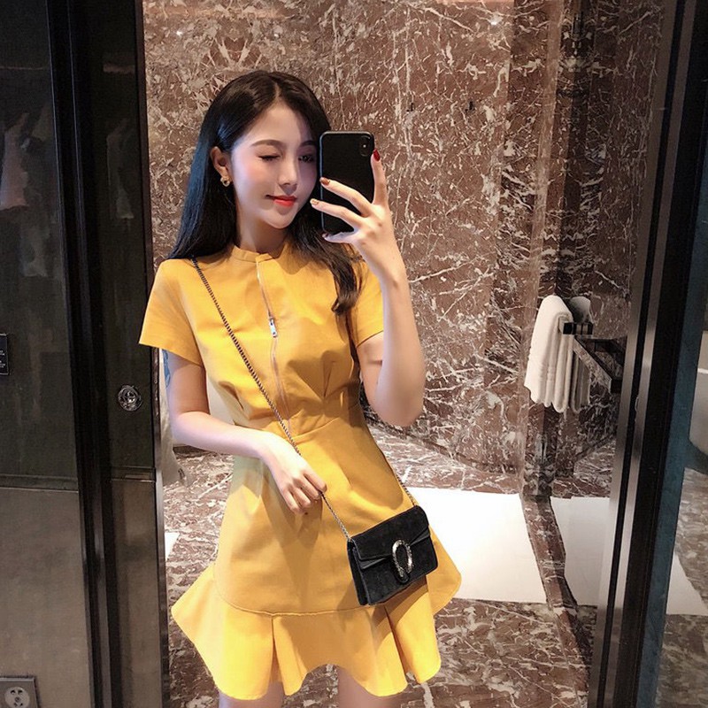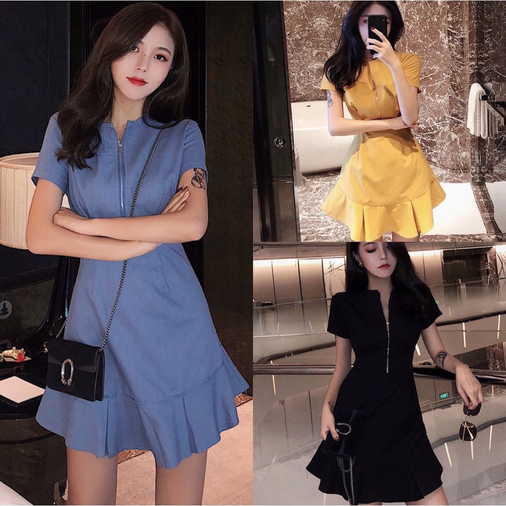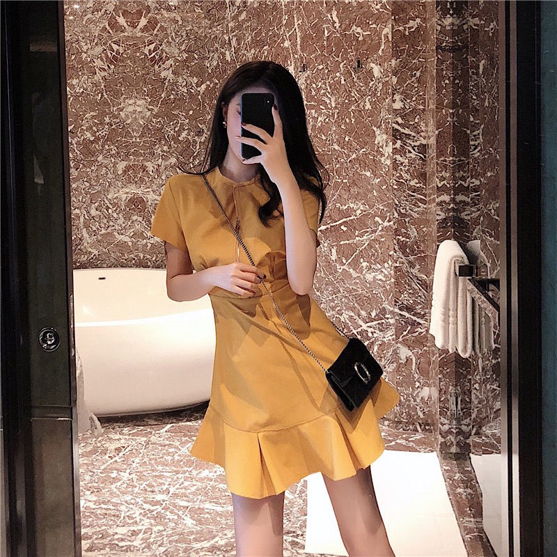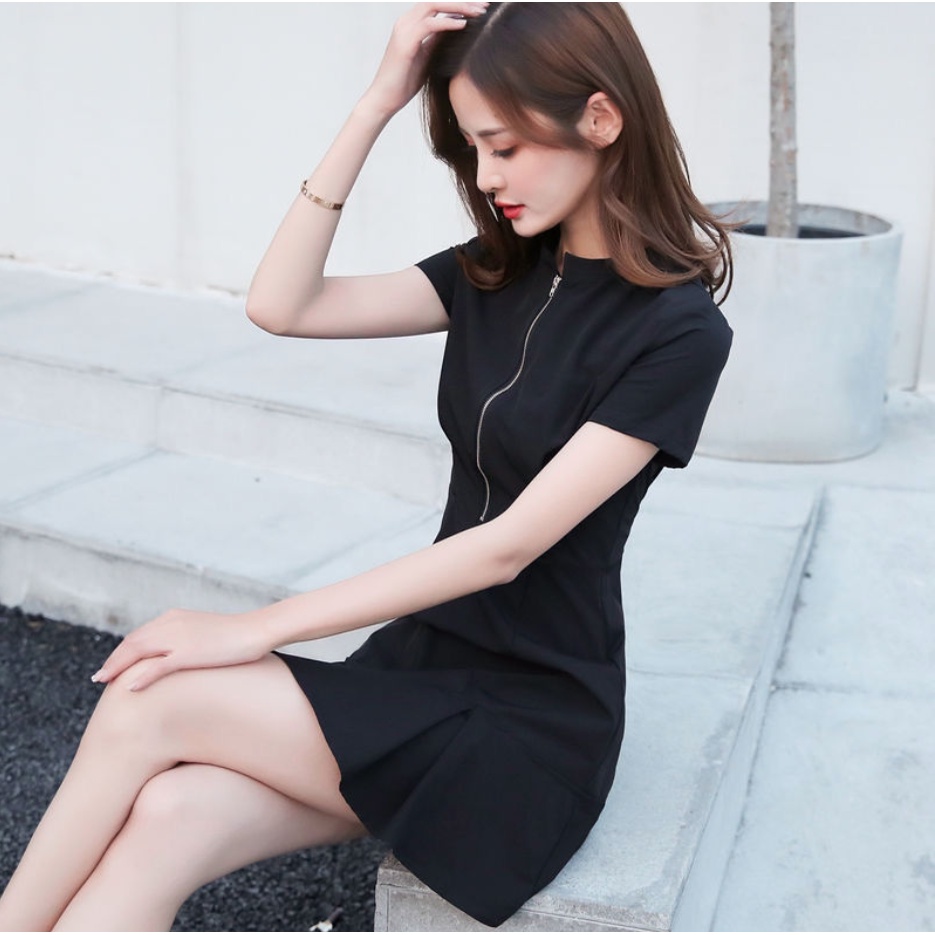 💜พร้อมส่ง💜เดรสแขนสั้น กระโปรงสั้นสวย แฟชั่นผู้หญิง ผ้าคุณภาพสูง K178