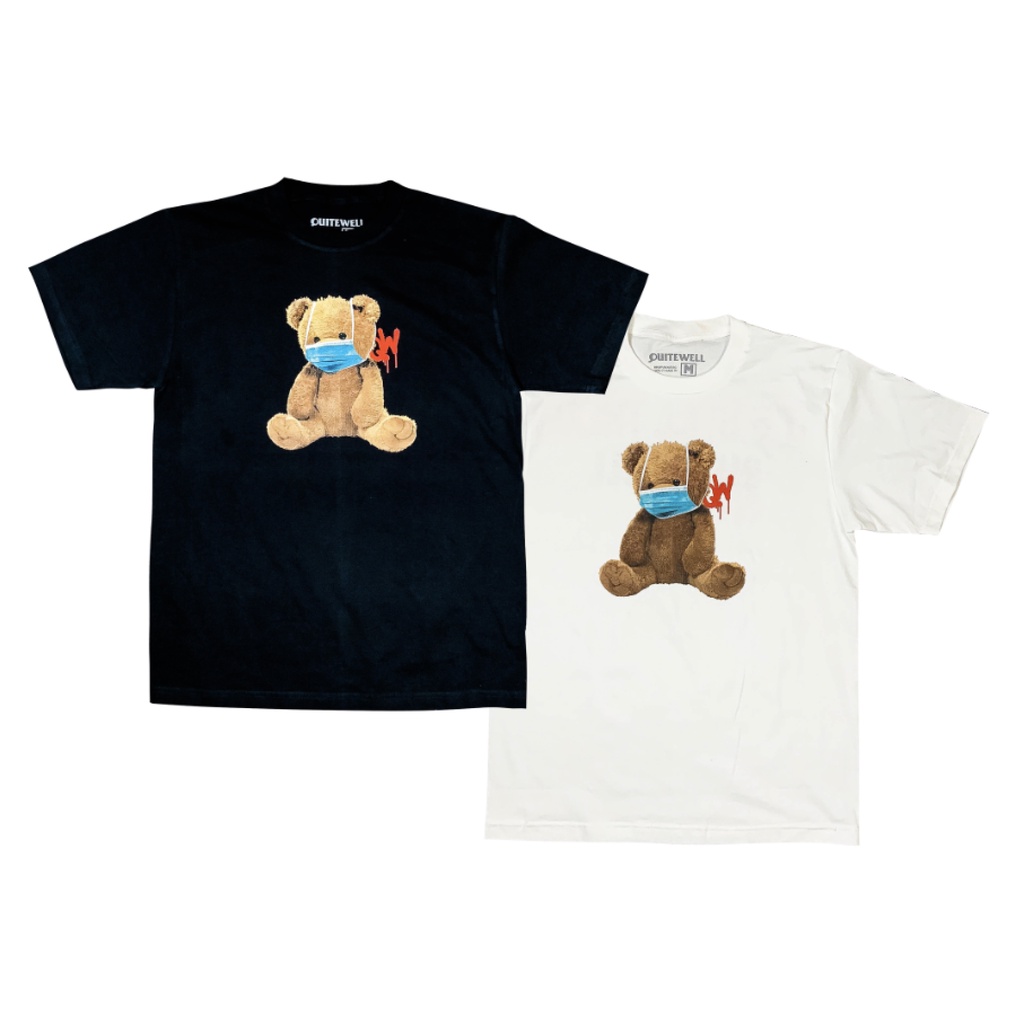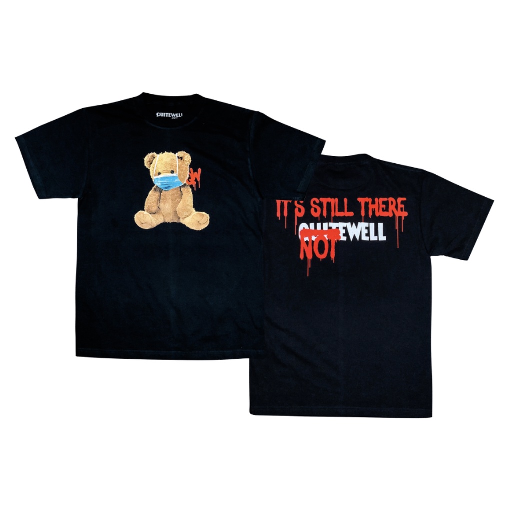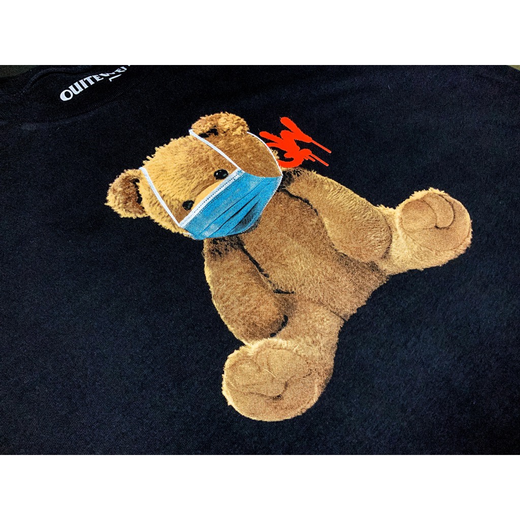 QUITEWELL เสื้อยืดแขนสั้น 184 NOTWELL เสื้อผู้ชาย Oversize สีดำ สีขาว วินเทจ ลายหมี