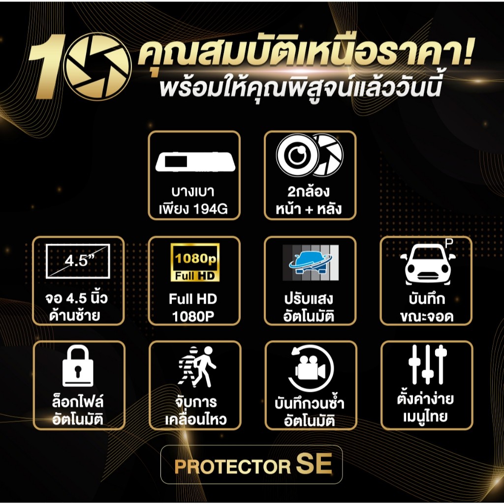 [พร้อมเมม32gb] Dengo Protector SE กล้องติดรถยนต์ สว่างกลางคืน 2กล้อง ปรับแสงอัตโนมัติ เมนูไทย รับประกัน 1 ปี