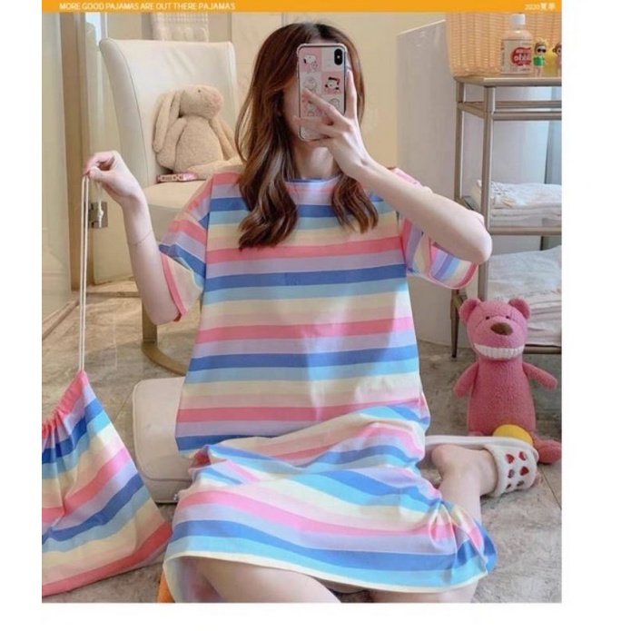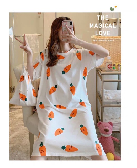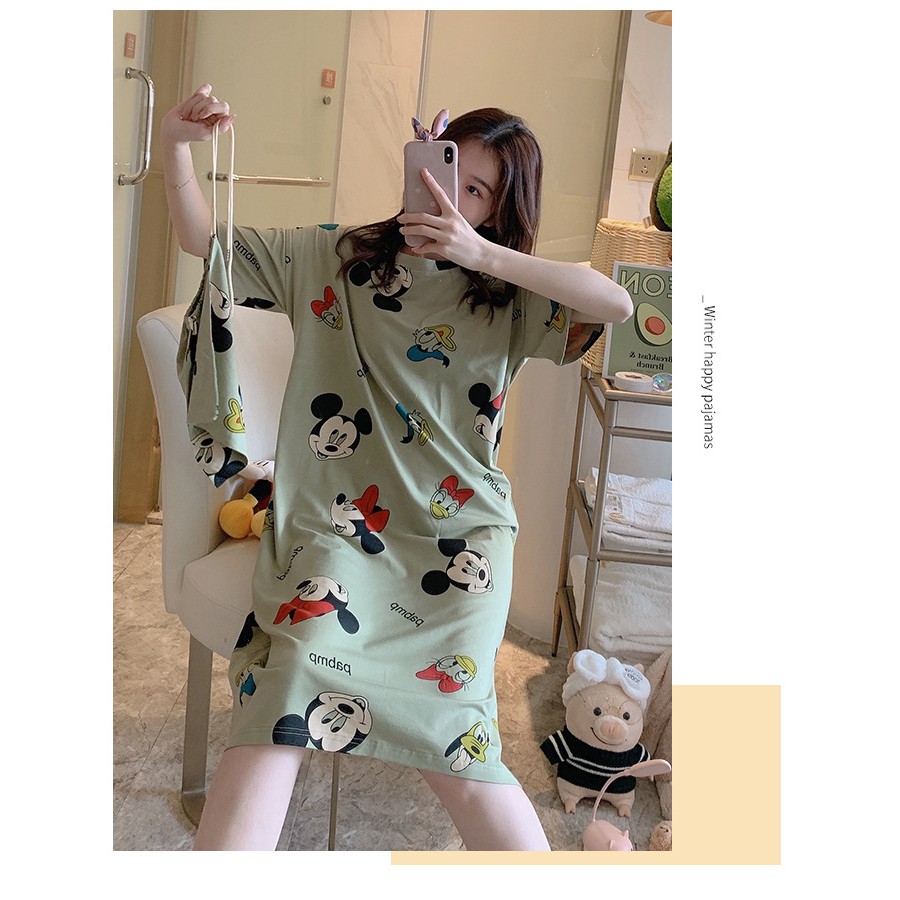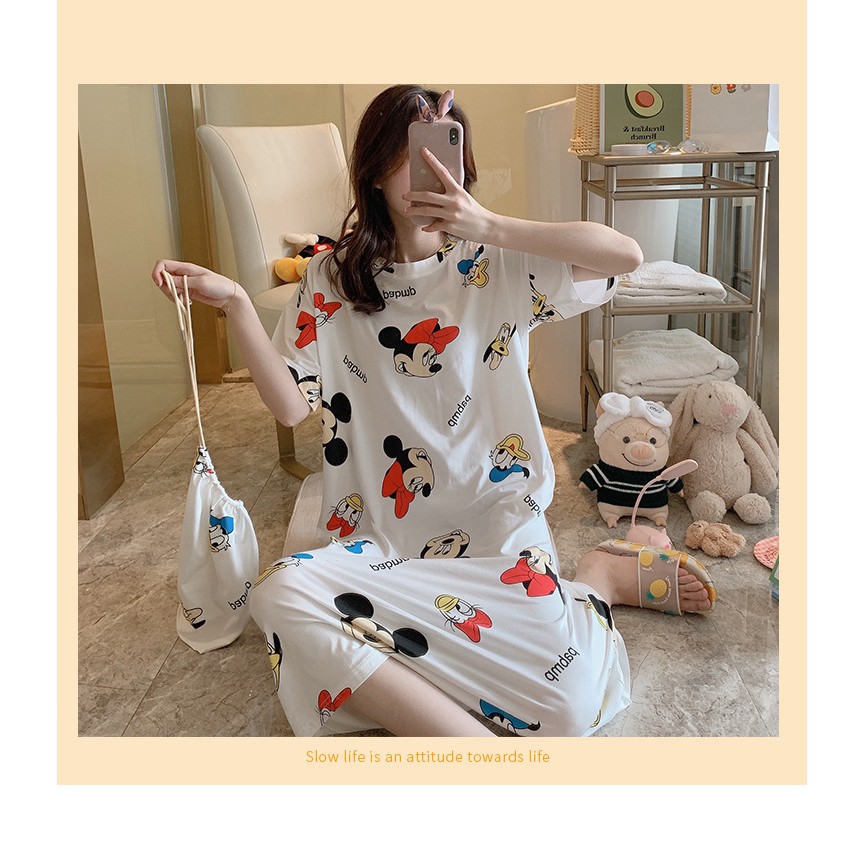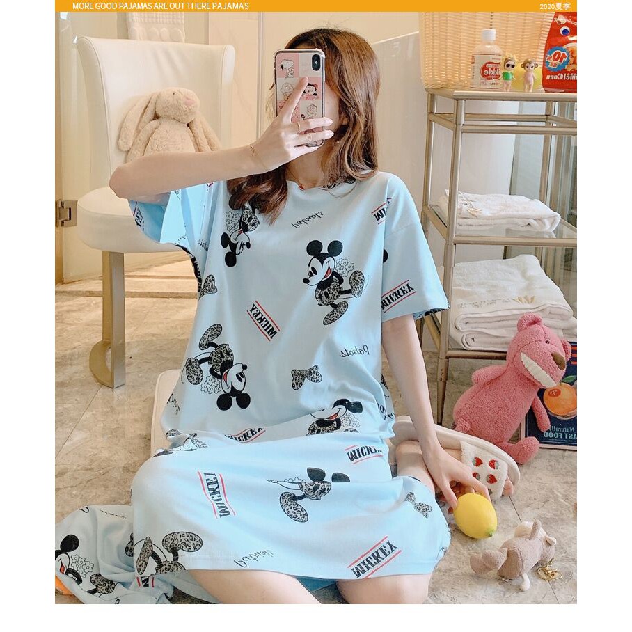 ชุดนอนกระโปรง คอกลมเดรส เนื้อนุ่มคุณภาพสูง ลายน่ารักมีถุงผ้าให้ทุกชุด ผ้าคอตตอน กระโปรงแขนสั้น
