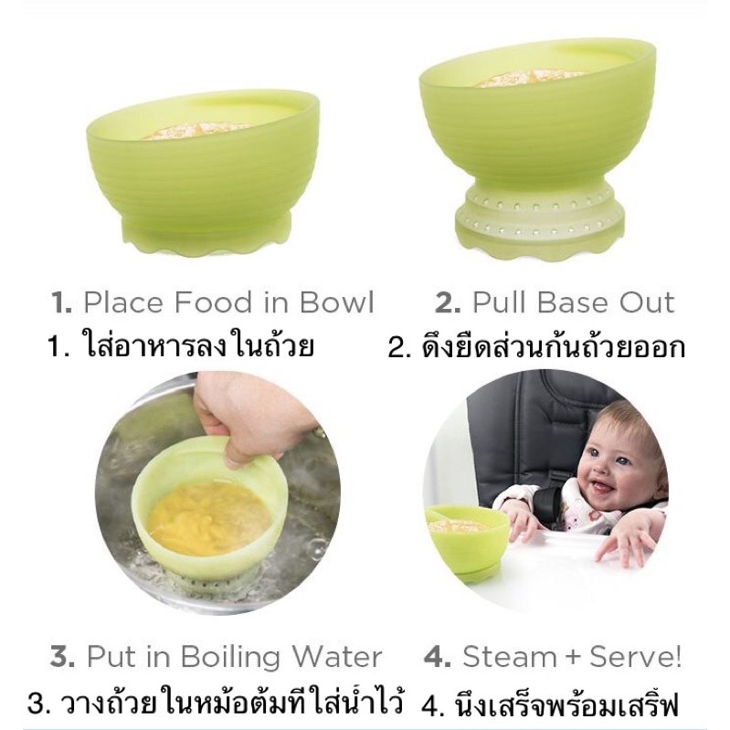 Olababy เซตถ้วยนึ่งซิลิโคนพร้อมช้อนป้อนและช้อนหัดทานซิลิโคน