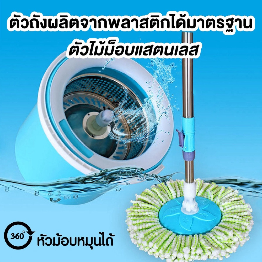 ไม้ถูพื้น ไม้ถูเดี่ยว ไม้ถูพื้นแบบถังเดี่ยว ชุดถังปั่น+ไม้ม็อบ รุ่นถังเดี่ยว Single Spin Bucket แถมผ้าม็อบ 2 ผืน