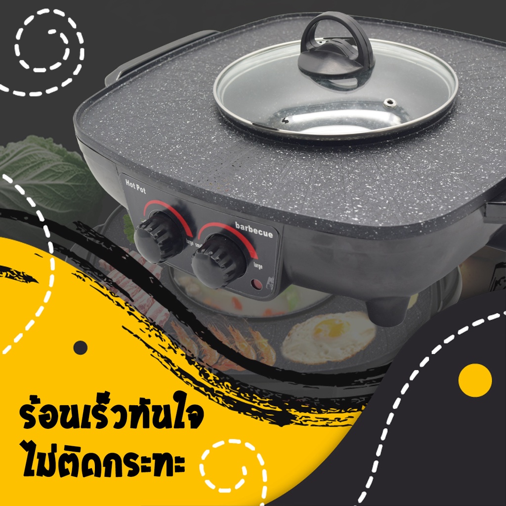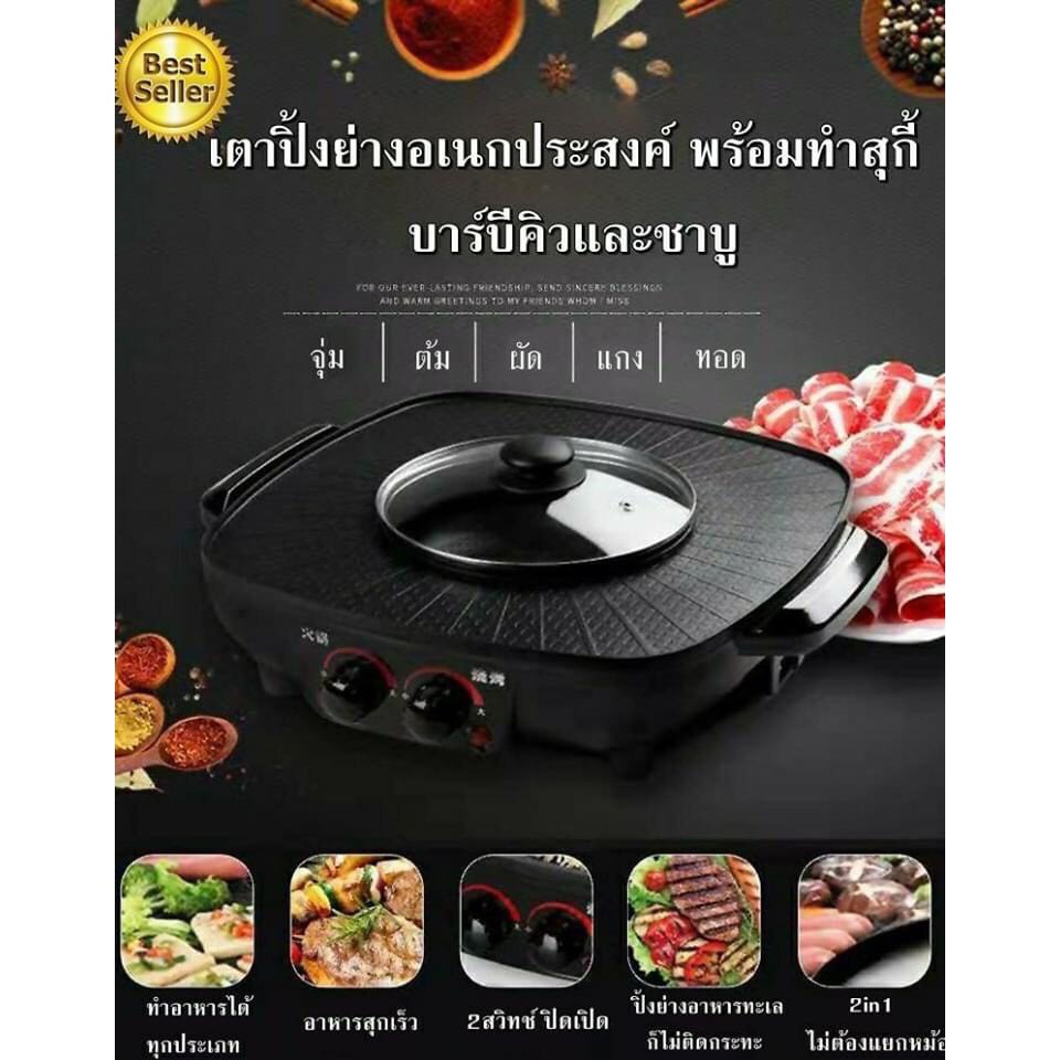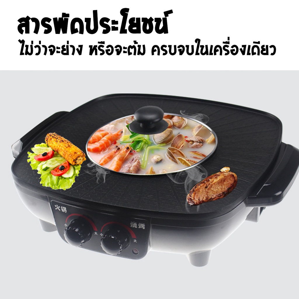 หม้อช าบู+ปิ้งย่าง 2 in 1 กระทะชาบู กะทะปิ้งย่าง หม้อชาบู หม้อต้ม หม้อหมูกะทะ เตาปิ้งย่างไฟฟ้า มีรูระบายน้ำมัน