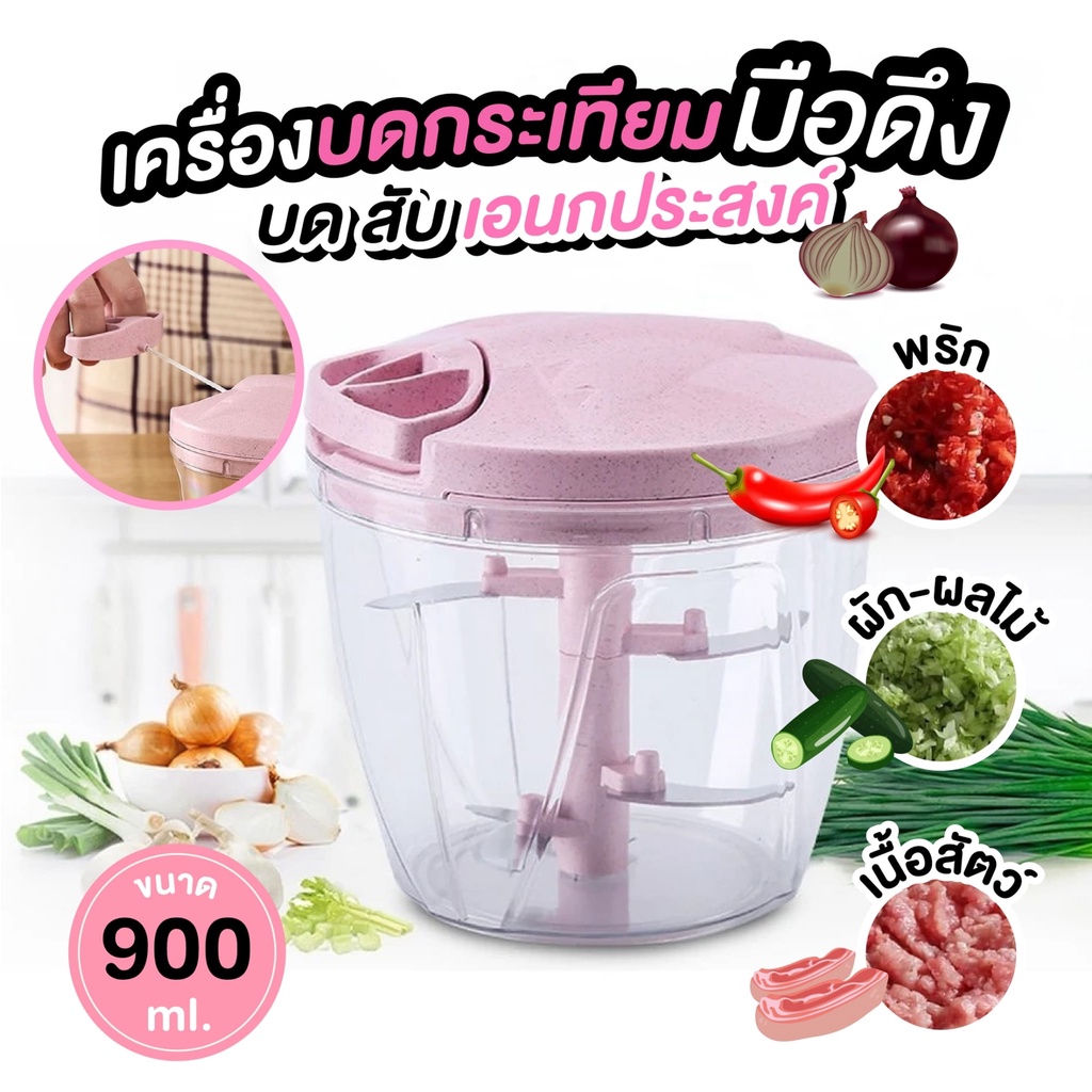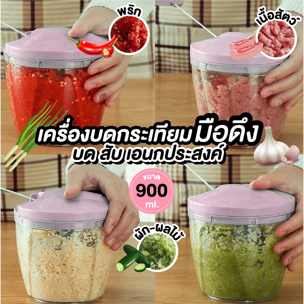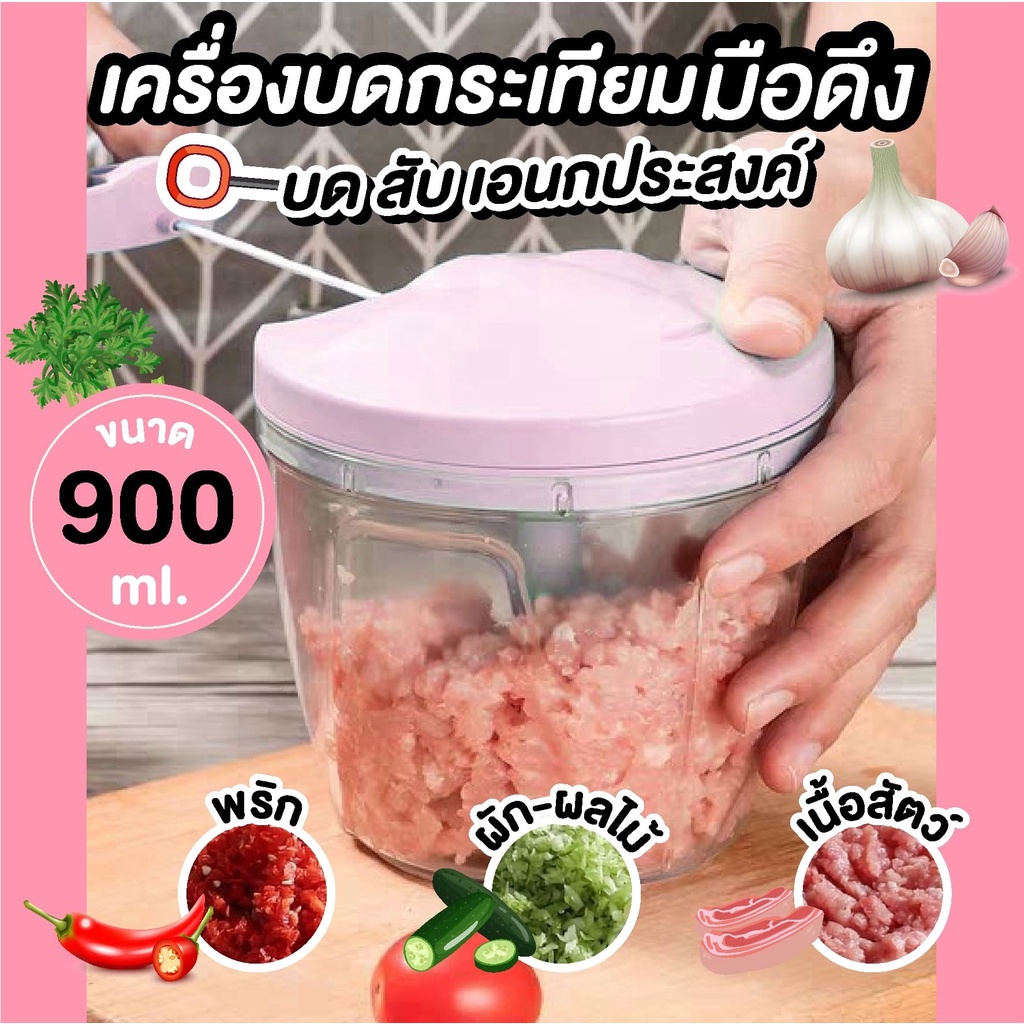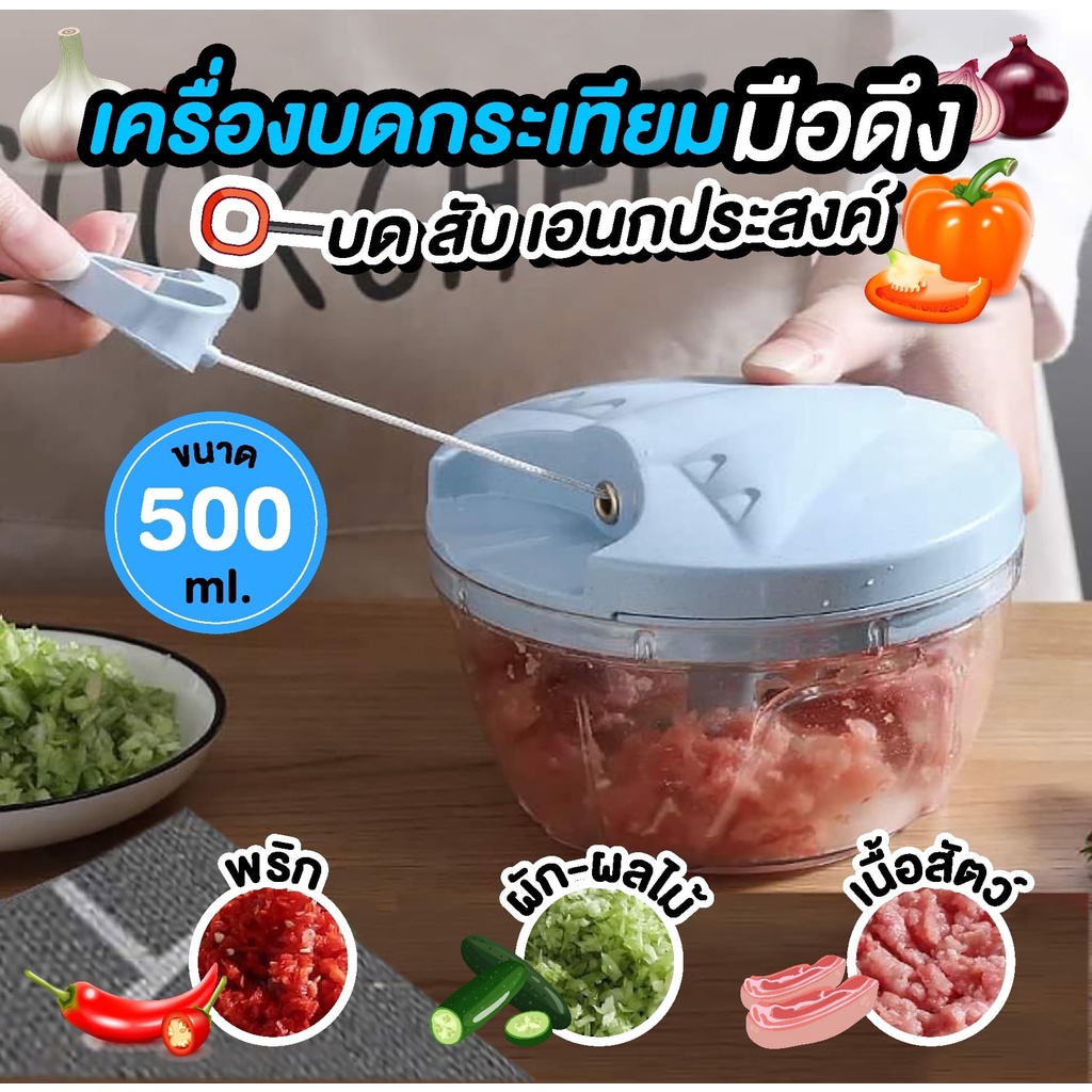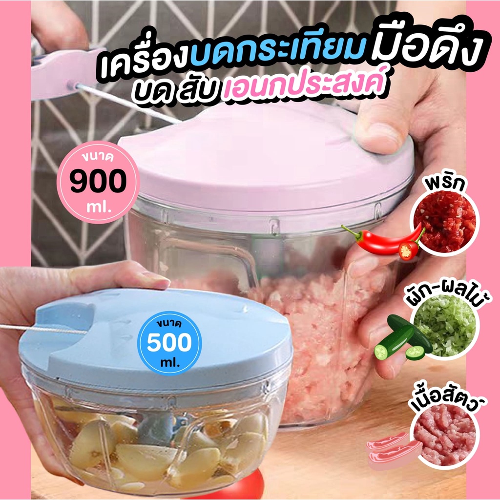 เครื่องปั่นบดสับอาหารอเนกประสงค์แบบมือดึง เครื่องบดกระเทียม เครื่องปั่นมือดึง บดสับละเอียด