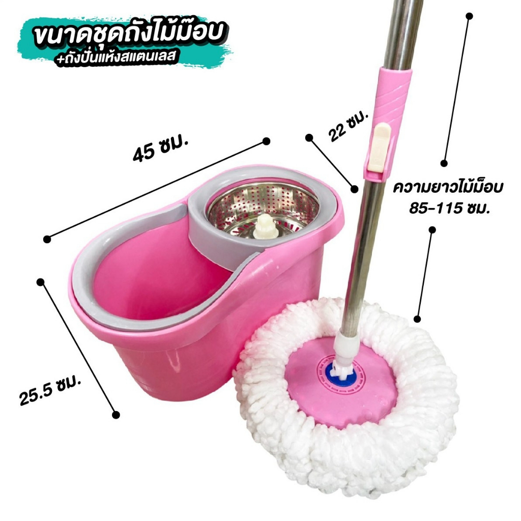 ✔️✔️ส่งฟรี✔️✔️ ไม้ถูพื้นถังปั่น spin mop ถังปั่นแห้ง ไม้ม๊อบถูพื้นพร้อมถังปั่นสแตนเลส ไม้ม็อบถั่งปั่น พร้อมผ้าม็อบ2ผืน