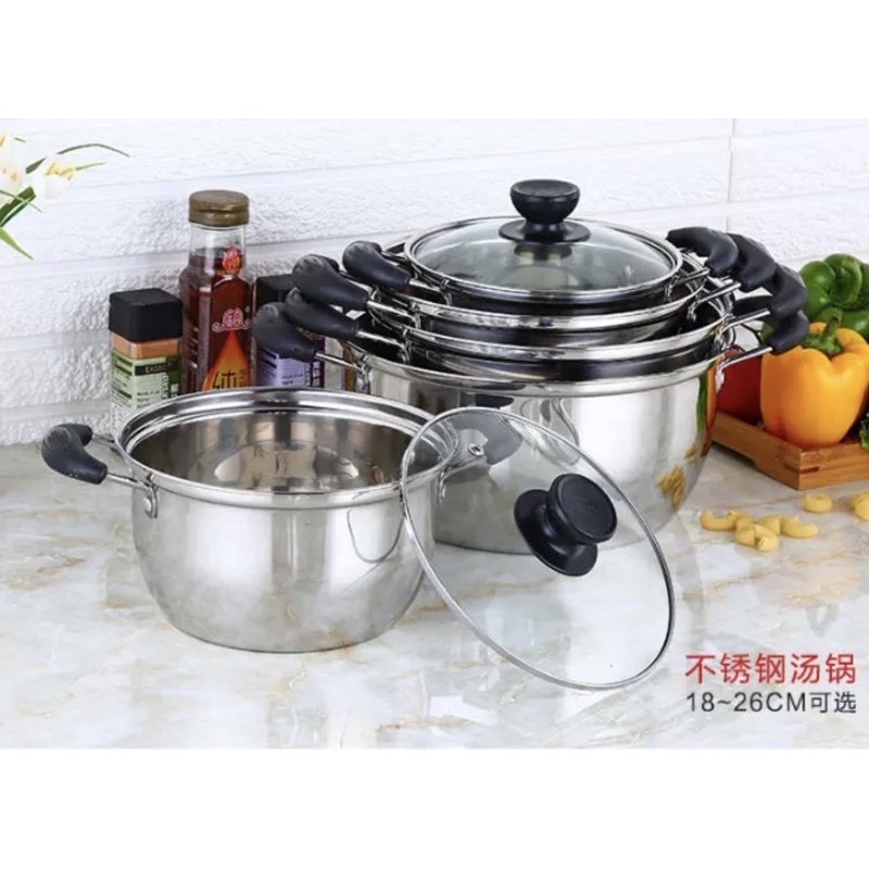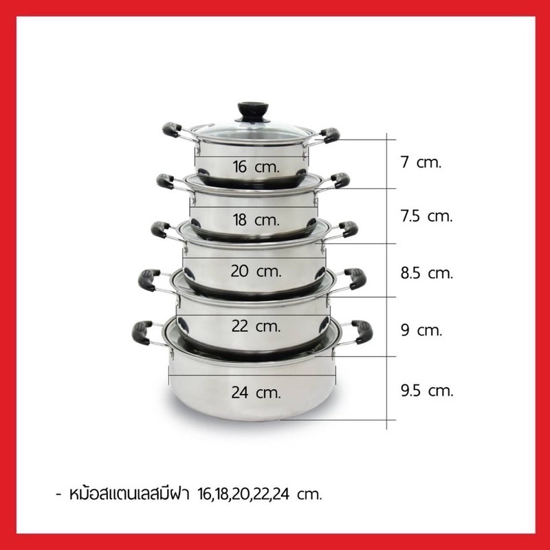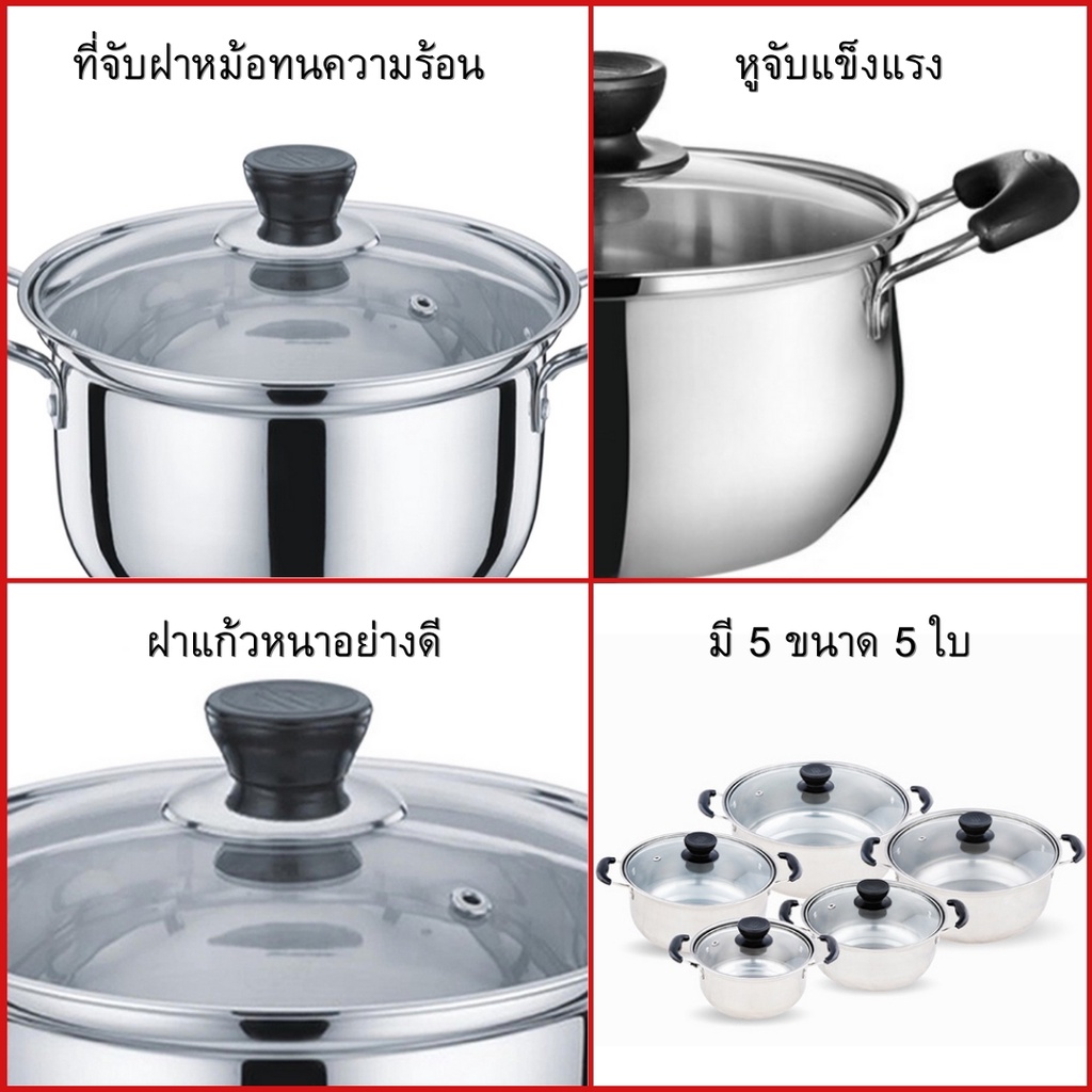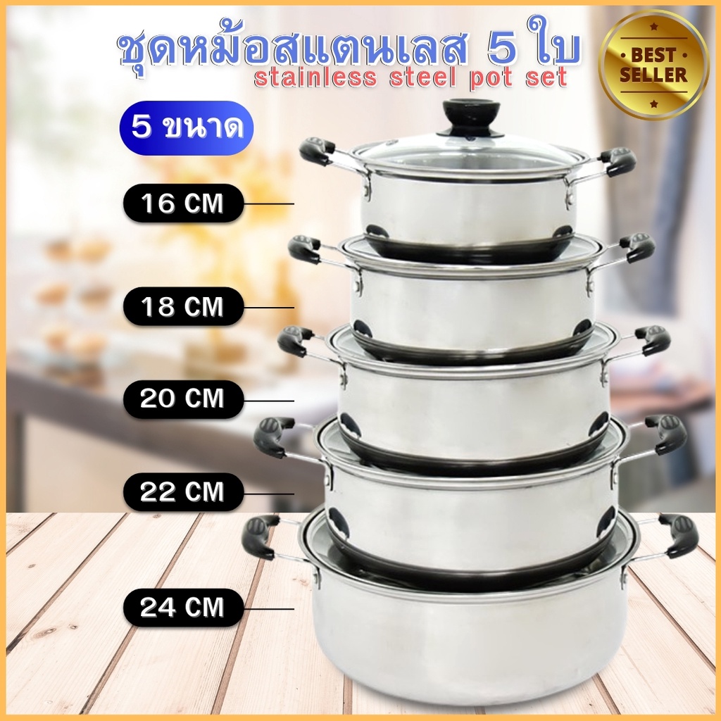 หม้อสแตนเลสพร้อมฝาปิด5ใบ/ชุด เครื่องครัว หม้อ หม้อสแตนเลส หม้อต้มอาหาร ใช้กับเตาแม่เหล็กไฟฟ้าได้