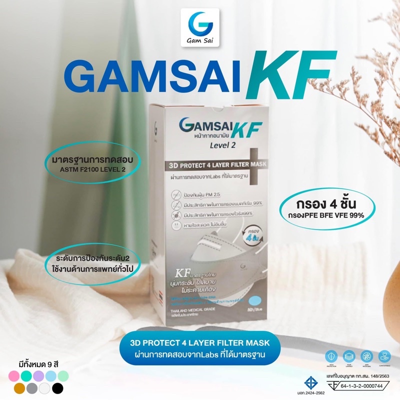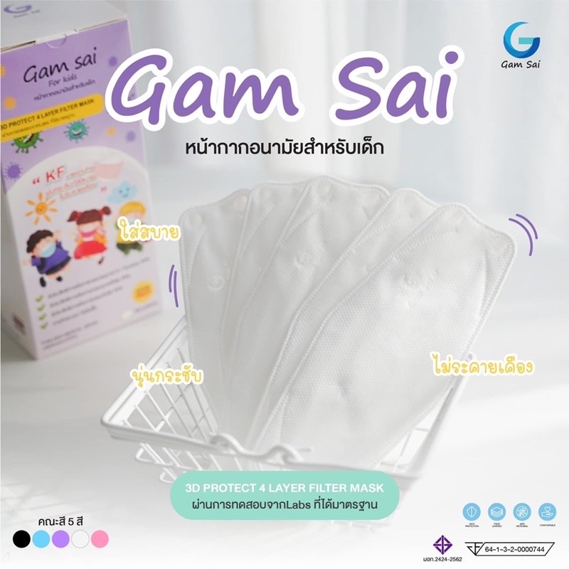 Gamsai KF หน้ากากอนามัยทางการแพทย์ 4 ชั้น (แท้ 100%) ปั๊ม Gamsai KF ทุกแผ่น