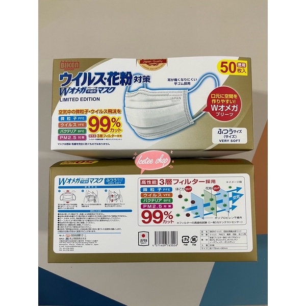 [ล็อตใหม่] ซีลทุกชิ้น Biken หน้ากากอนามัยญี่ปุ่น 50 ชิ้น (แท้ 100%) VFE 99% ปั๊ม Japan Quality ทุกแผ่น (พร้อมส่ง)