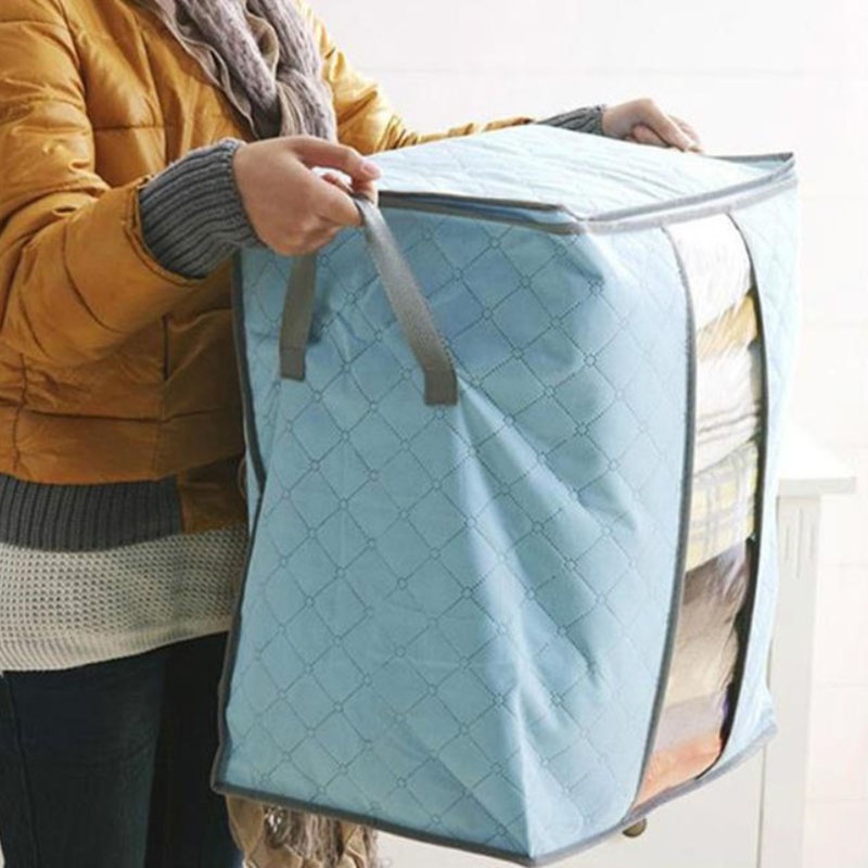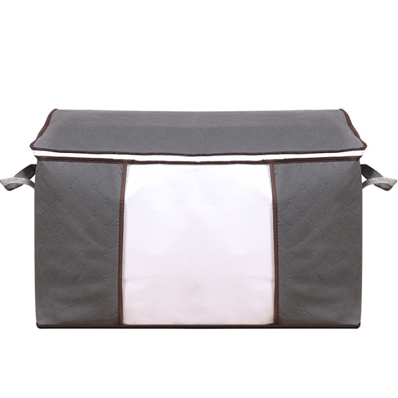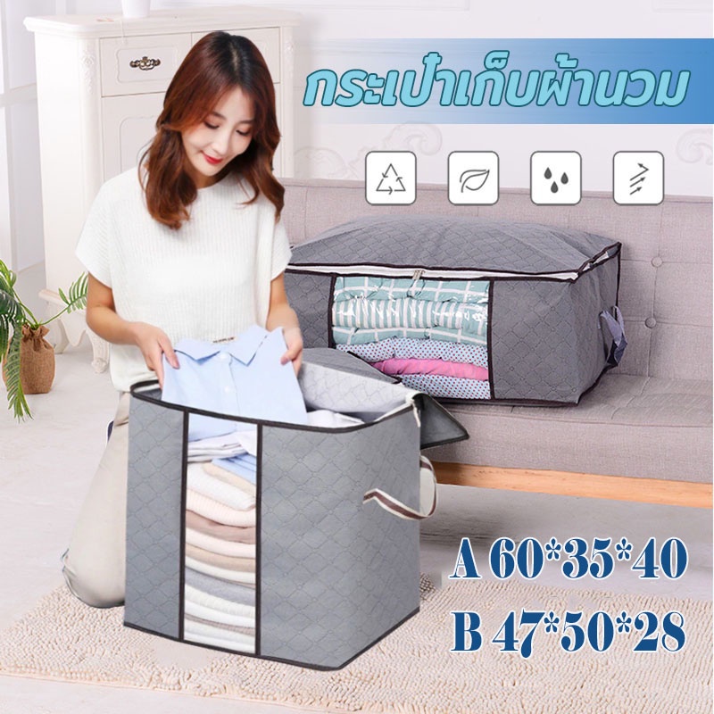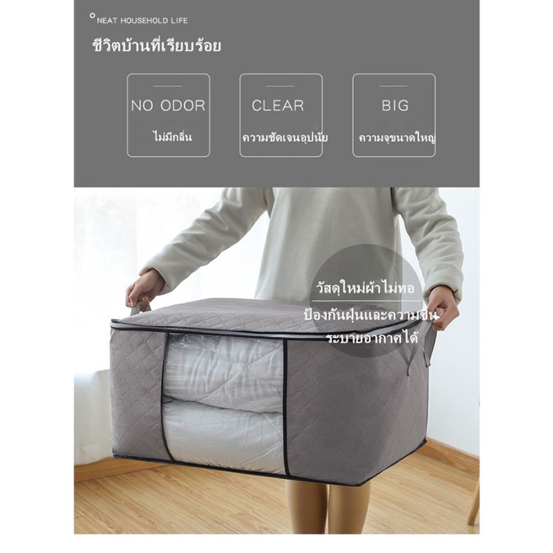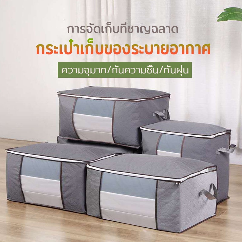 กระเป๋าเก็บผ้า กระเป๋าเก็บผ้านวม พับได้ มีซิปรูดปิดสีเทา