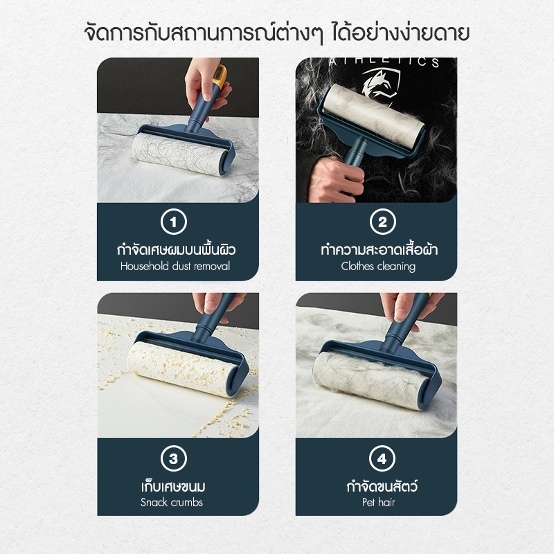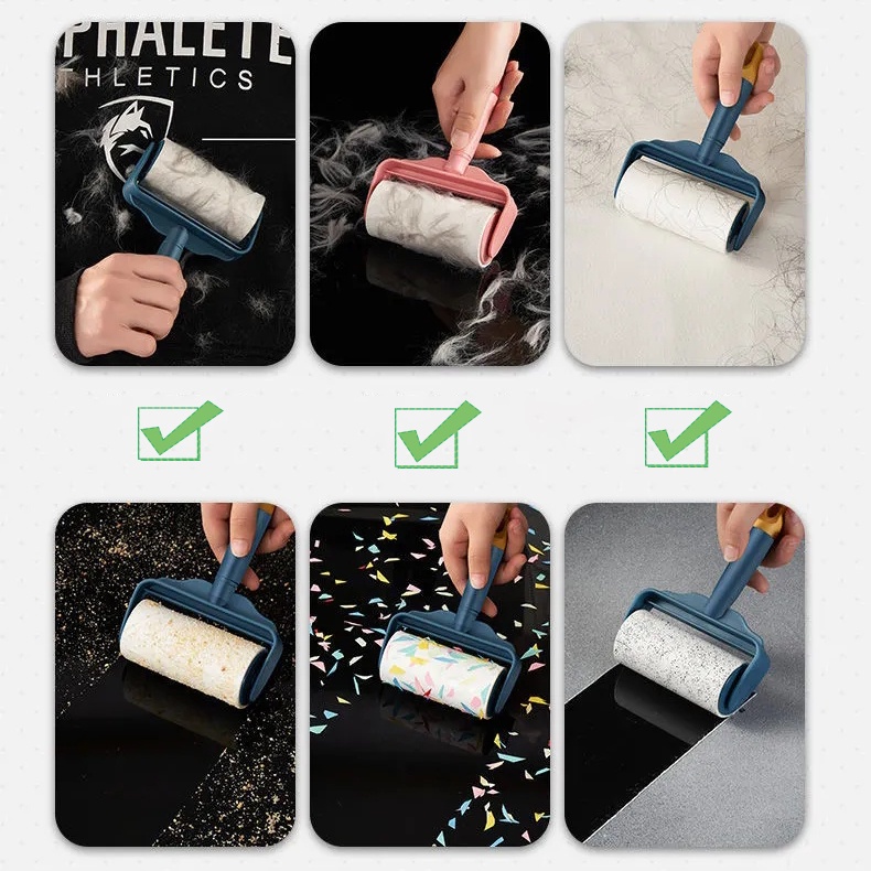 ลูกกลิ้งกำจัดขน ลูกกลิ้งทำความสะอาด ลูกกลิ้งเก็บฝุ่น เก็บขนและฝุ่น ฉีกกระดาษม้วนกระดาษเพื่อทำความสะอาดเสื้อผ้าผม
