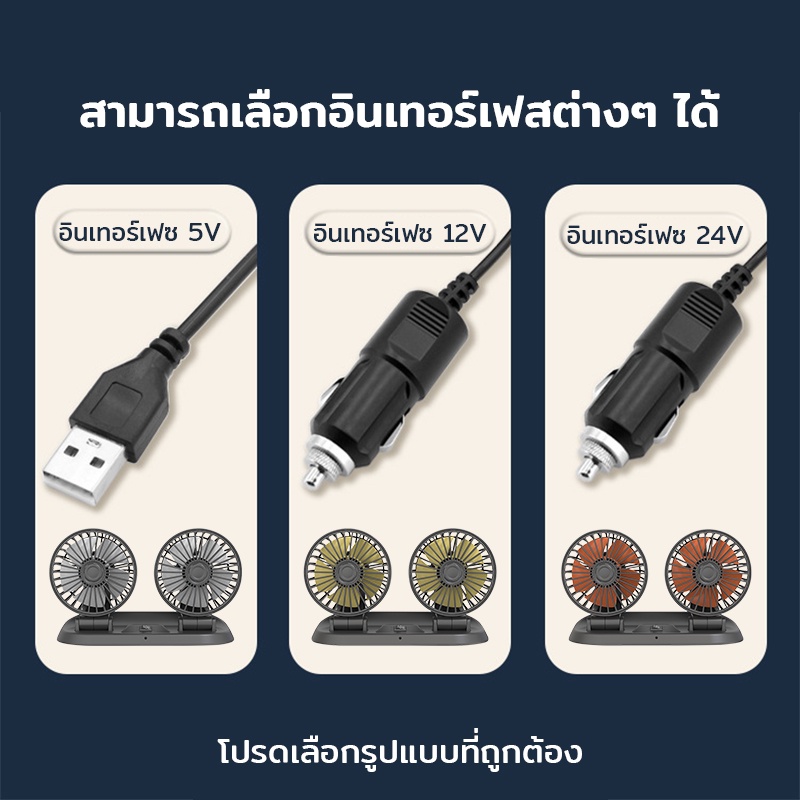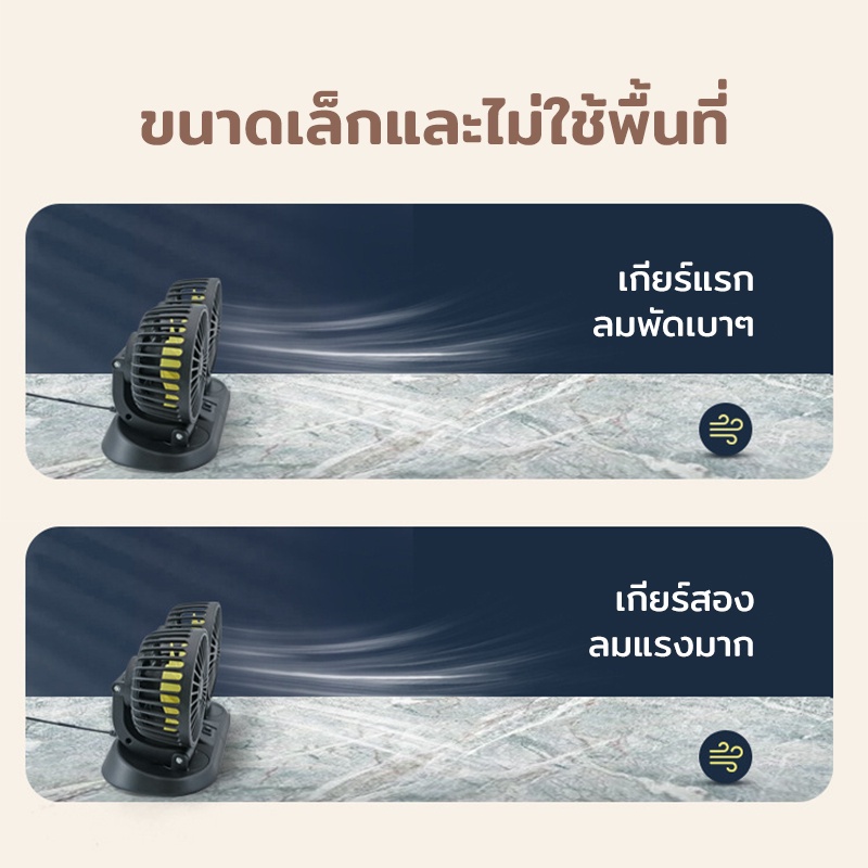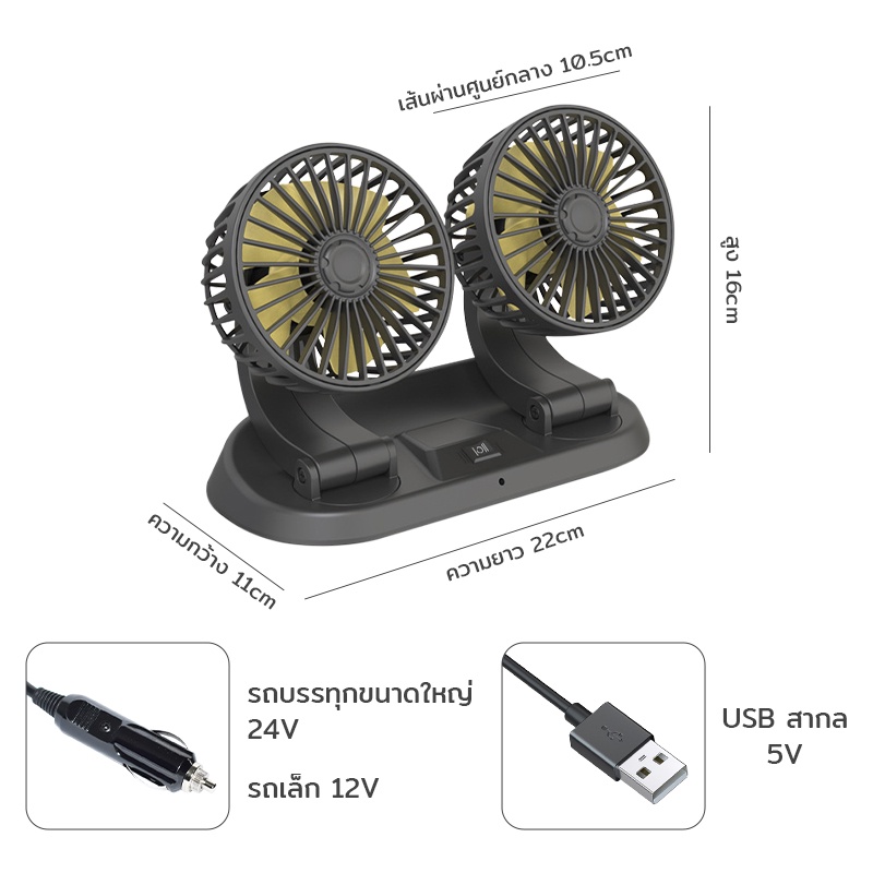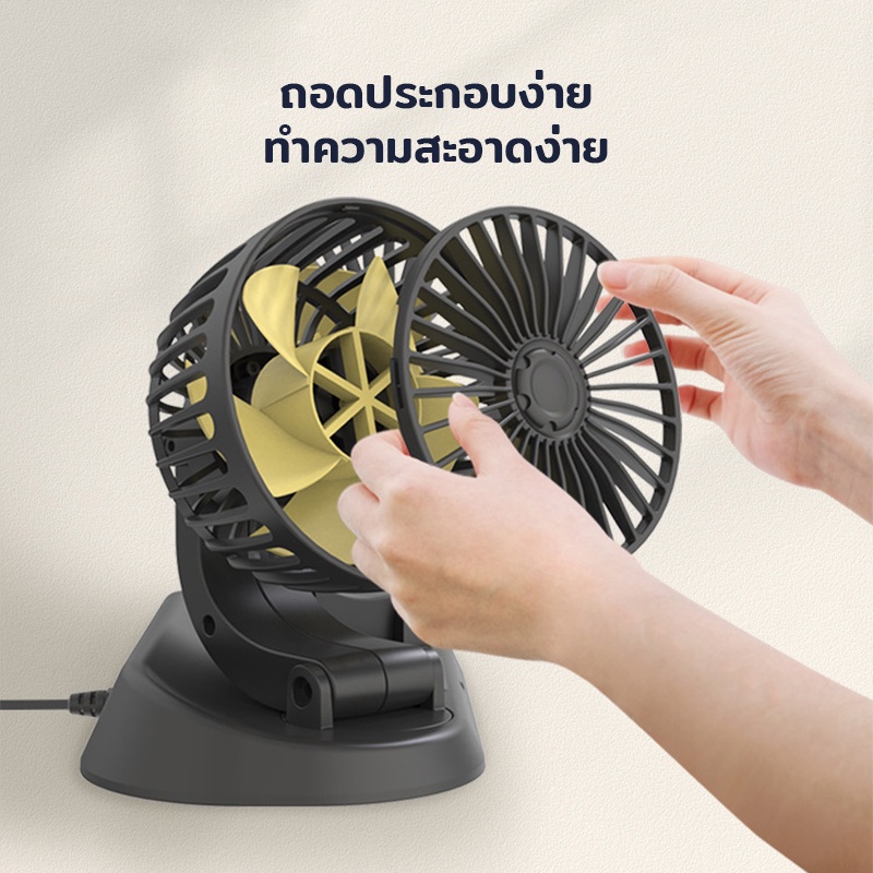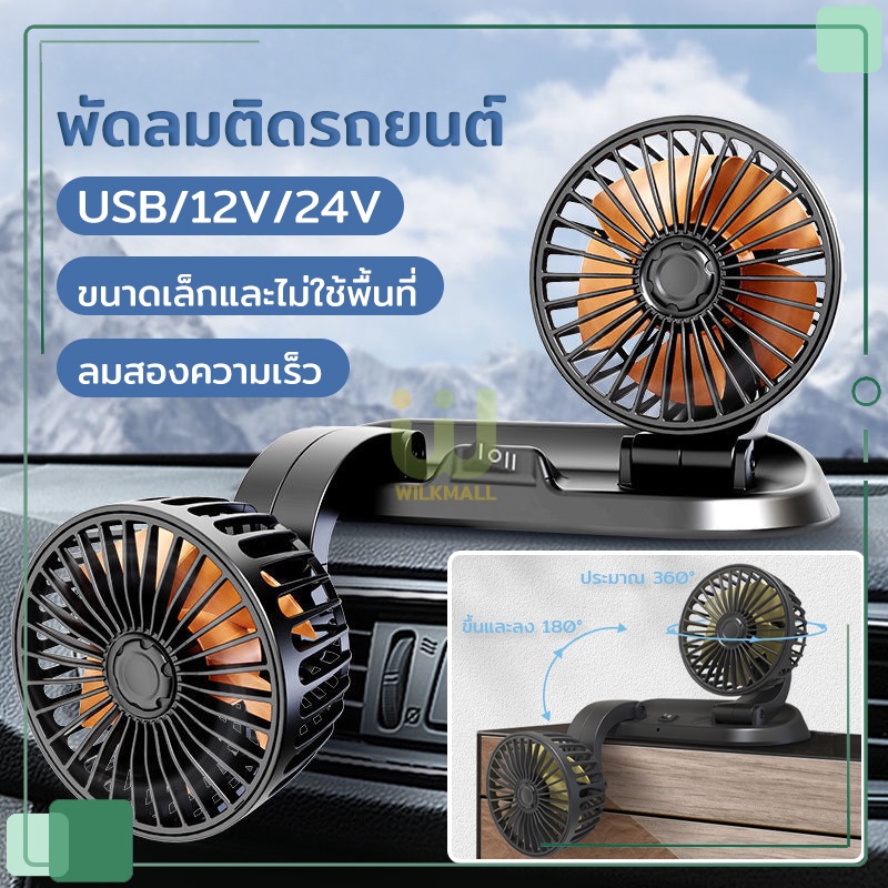พัดลม ติดรถยนต์ แบบพกพา 12v 24v 2หัว พัดลม USB ในรถยนต์ ปรับระดับได้ ส่ายไปมาได้ เหมาะสำหรับรถยนต์ รถบรรทุก