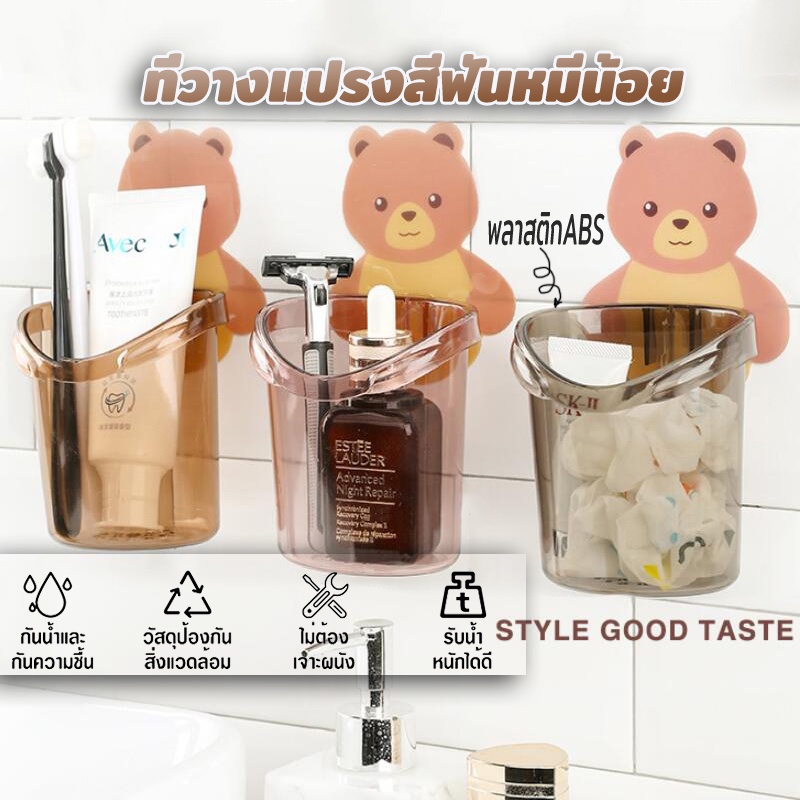 ที่วางยาสีฟัน หมีน้อยที่วางยาสีฟัน ที่วางแปรงสีฟัน กล่องเก็บอุปกรณ์อาบน้ำ ลายหมีน้อยน่ารัก