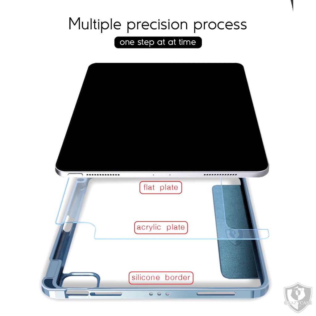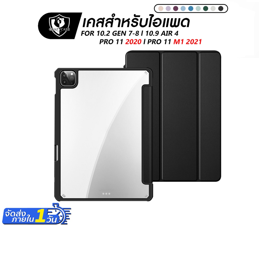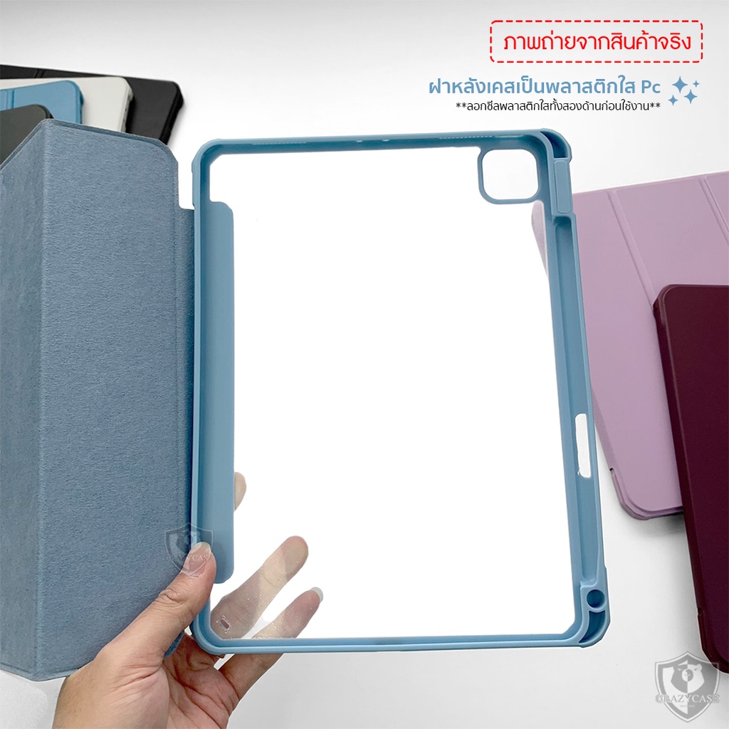 เคสสำหรับไอแพด (หลังPcใสกิ้ง) หลังใสแข็ง(อะคริลิค กันเครื่องงอ) ที่ใส่ปากกาด้านขวา For10.2Gen7/8/9 10.9Air4/5 / Pro11