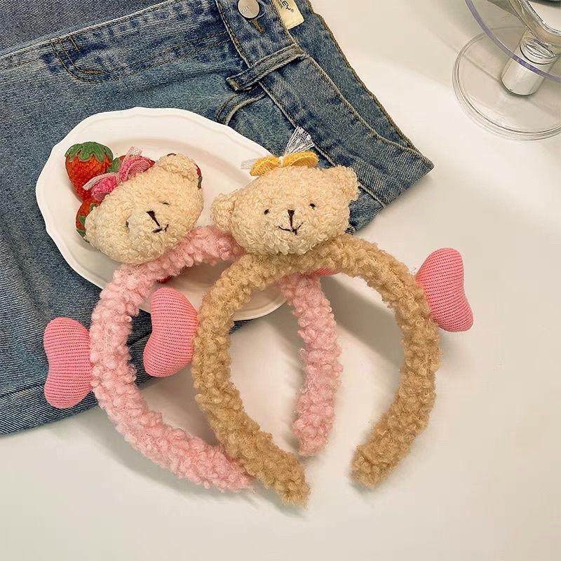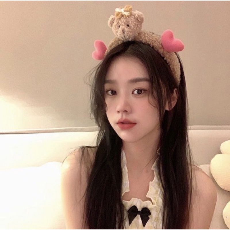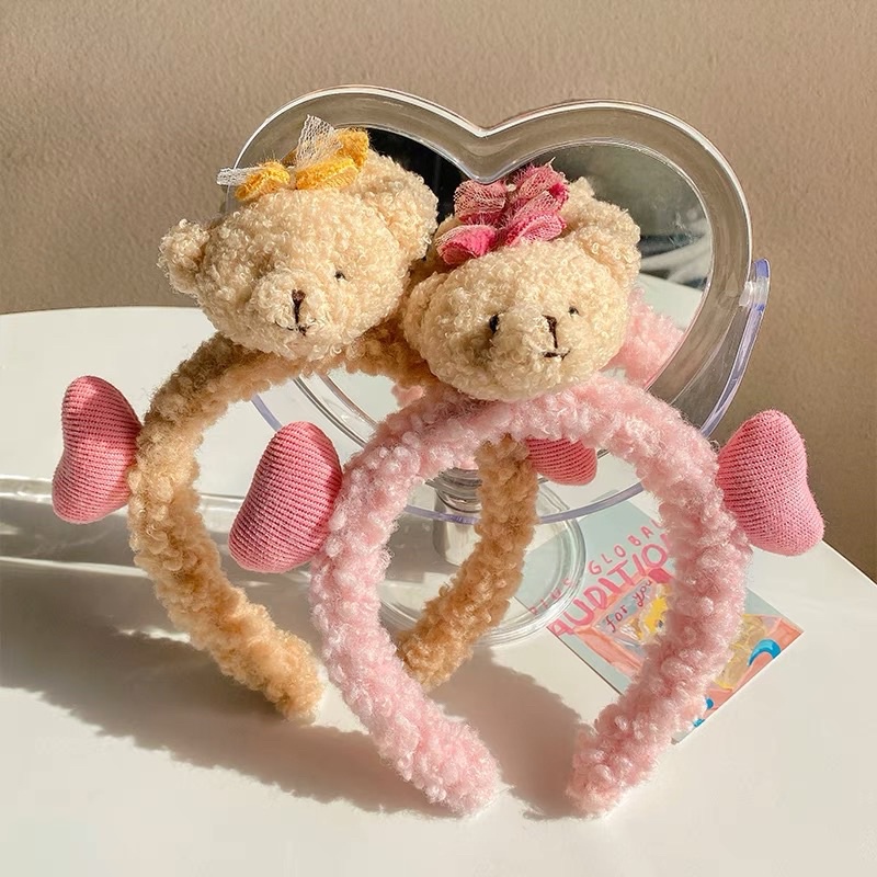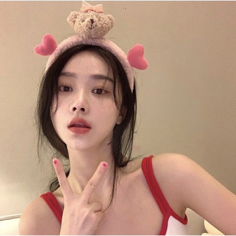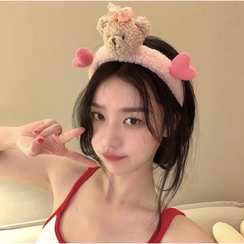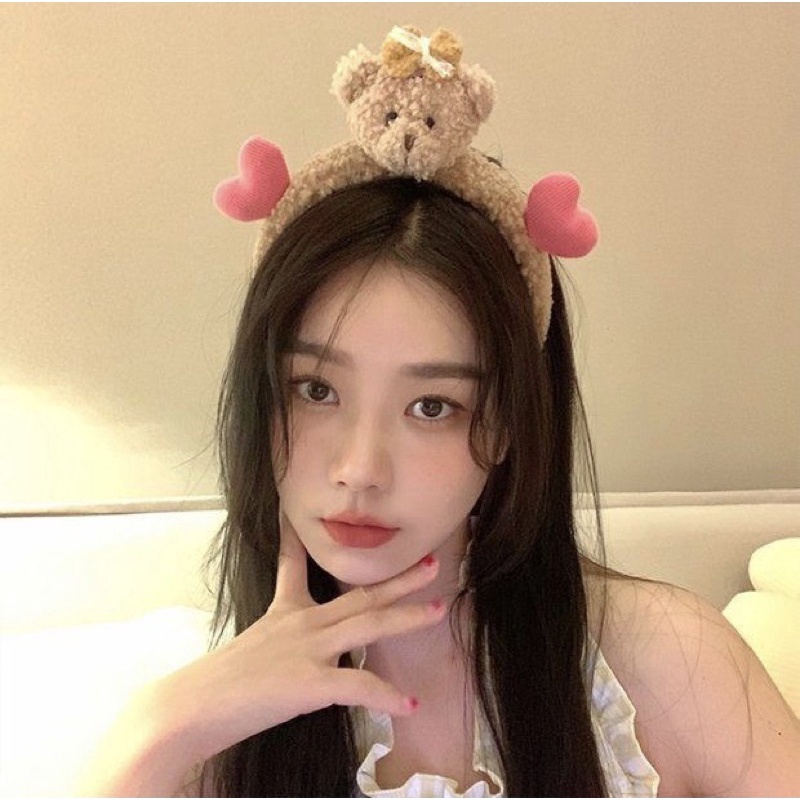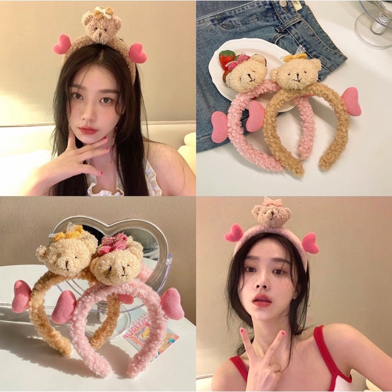 👍👍👍คาดผมตุ๊กตา หัวหมีมีหัวใจ น่ารักๆ น้องหมีขนฟูนุ่มนิ่มมากๆสินค้าใหม่ของเกาหลี ที่คาดผมผ้ากำมะหยี่