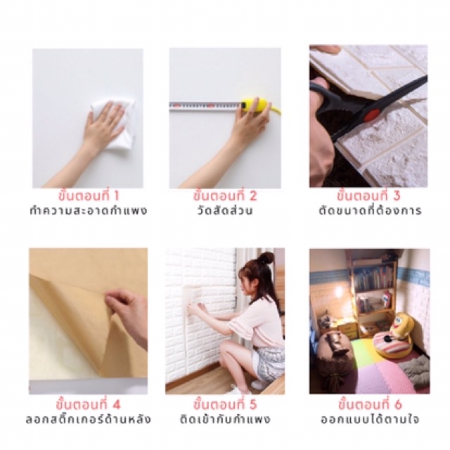 วอลเปเปอร์ 3D แผ่นใหญ่ ขนาด 70*77cm สามมิติ wallpaper ติดผนัง วอลล์เปเปอร์ลายอิฐ มีกาวในตัว 1 แผ่น