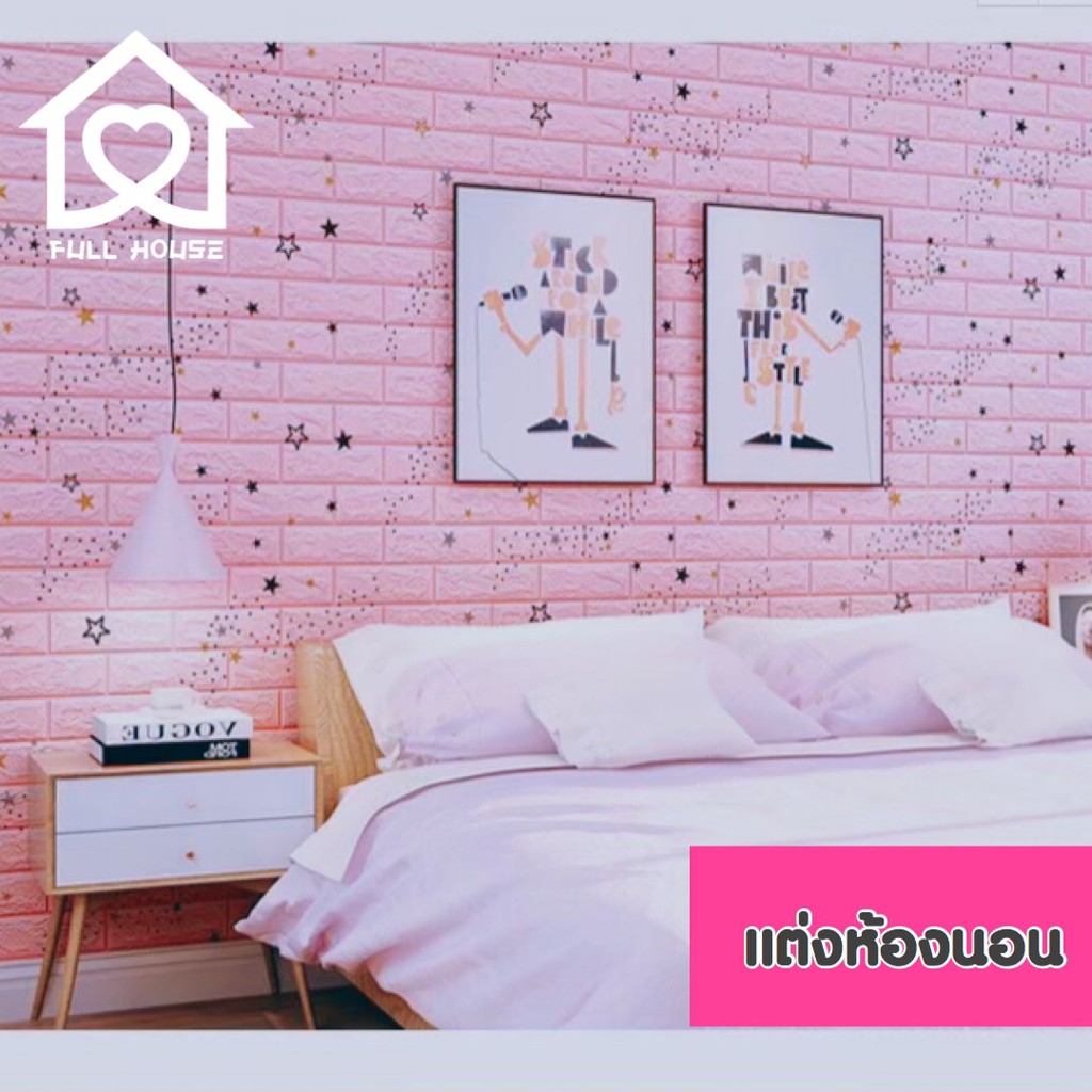 🔥พร้อมส่ง ในไทย🔥 วอลเปเปอร์สามมิติ 70*77cm มีกาวในตัวติดผนัง 3D wallpaper วอลล์เปเปอร์ลายอิฐ ลายการ์ตูน