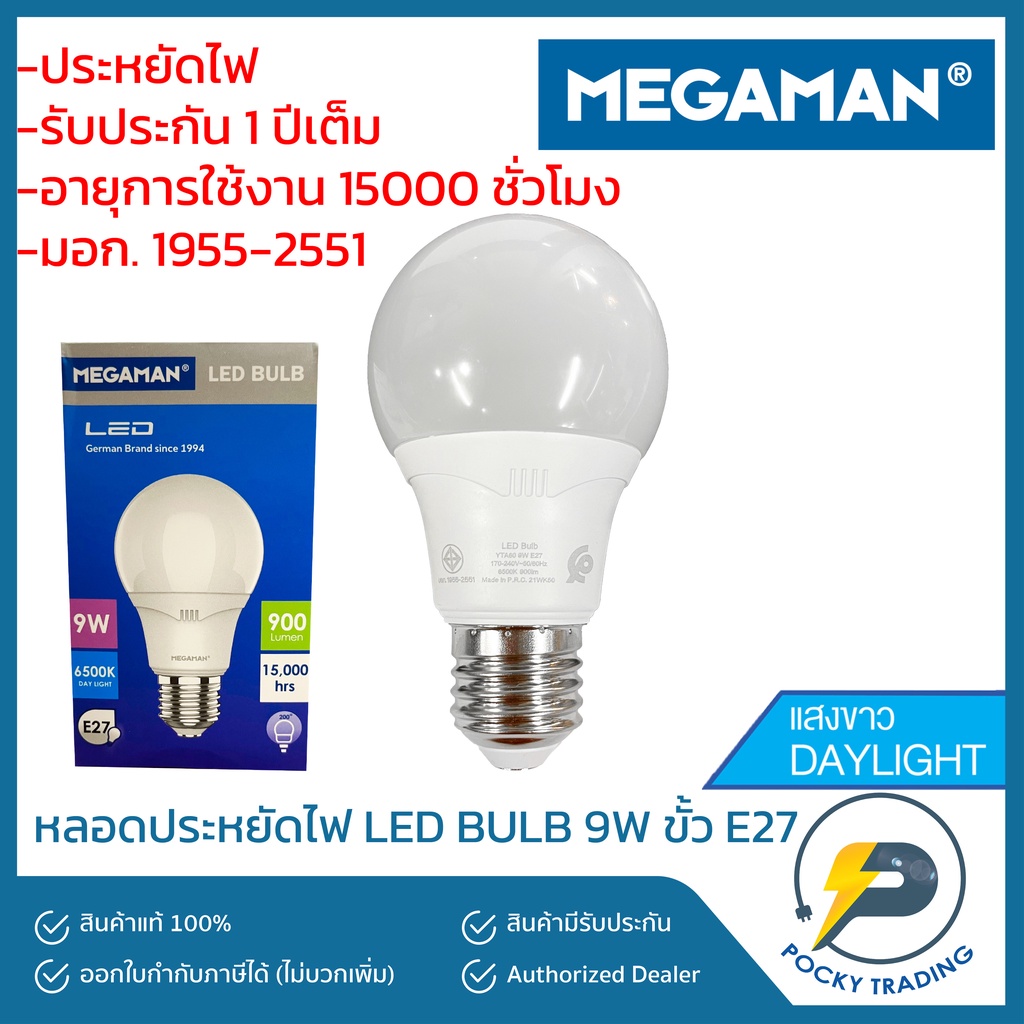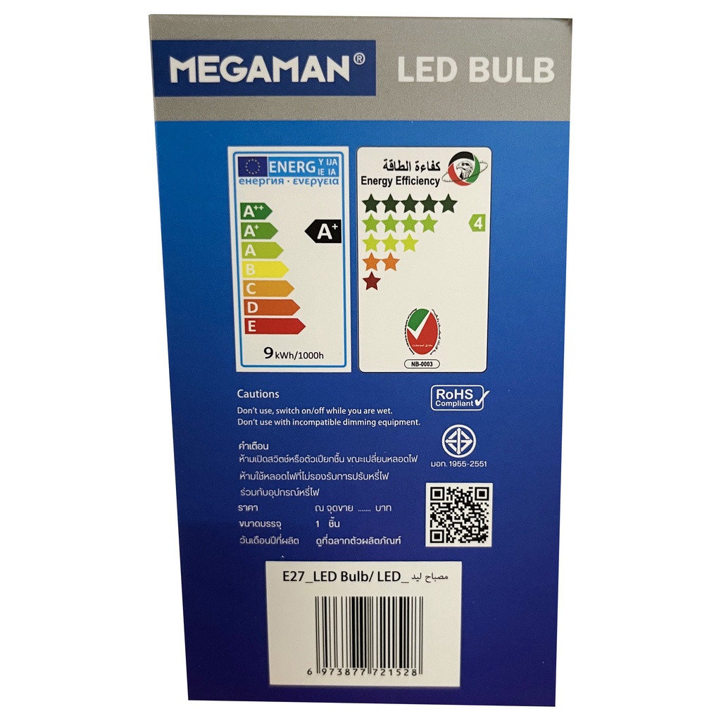 MEGAMAN หลอด LED BULB 9W ขั้ว E27 900lm แสงขาว อายุการใช้งานยาวนานถึง 15000 ชั่วโมง