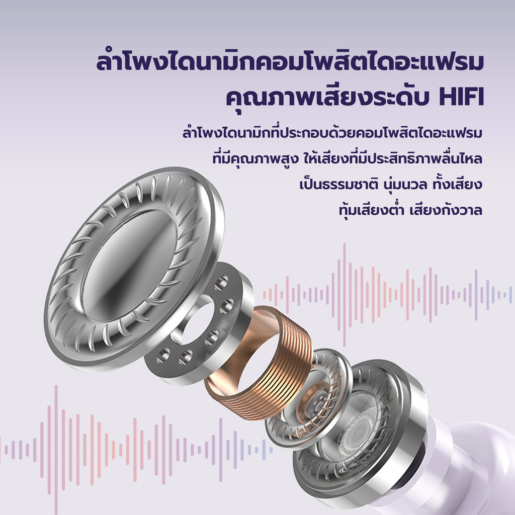 TWS หูฟังไร้สายบลูทูธ หูฟังสำหรับผู้หญิง เสียงHI-FIเบสหนักพร้อมไมค์ Wireless Bluetooth รุ่นT19