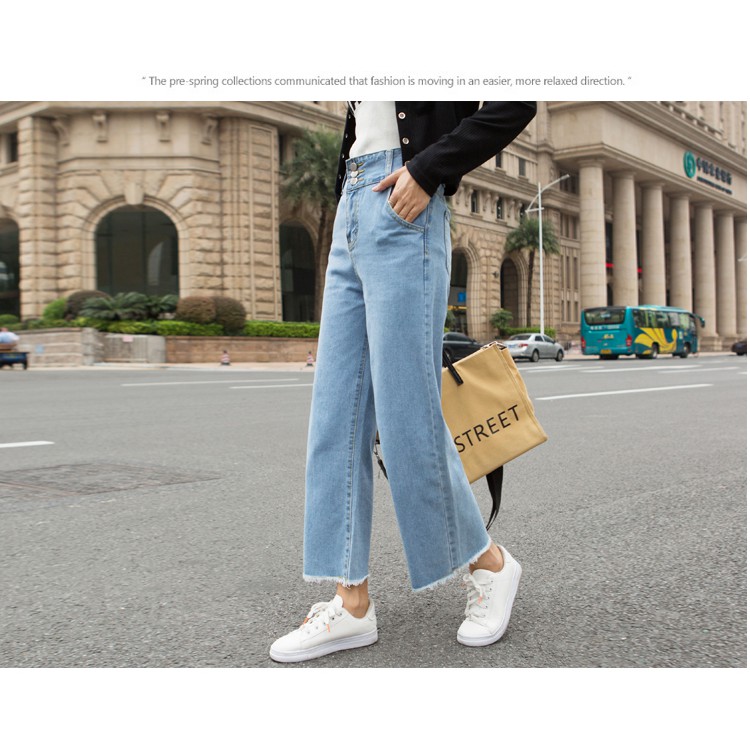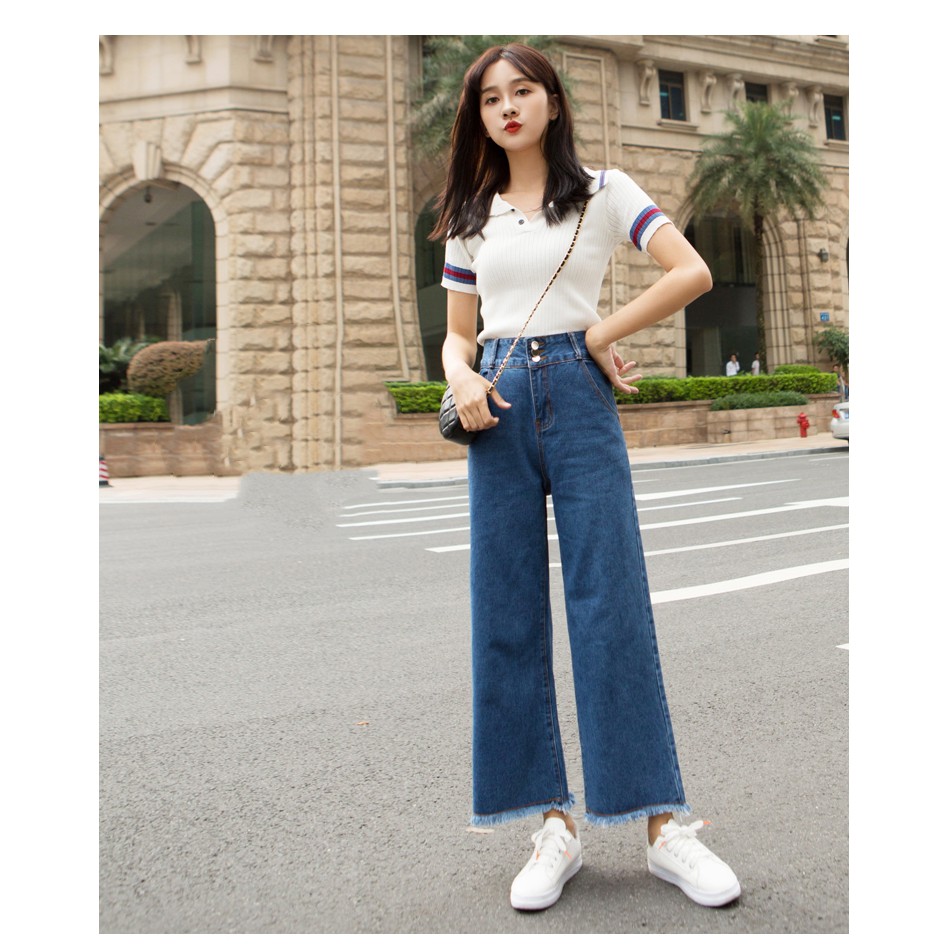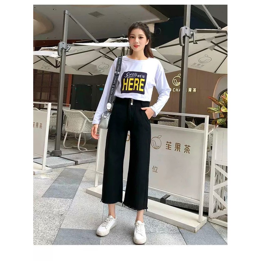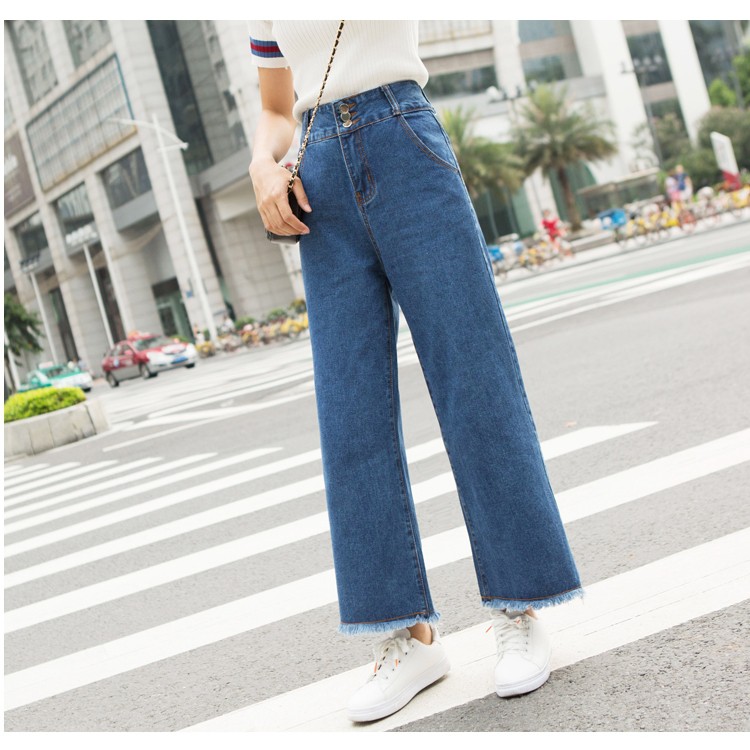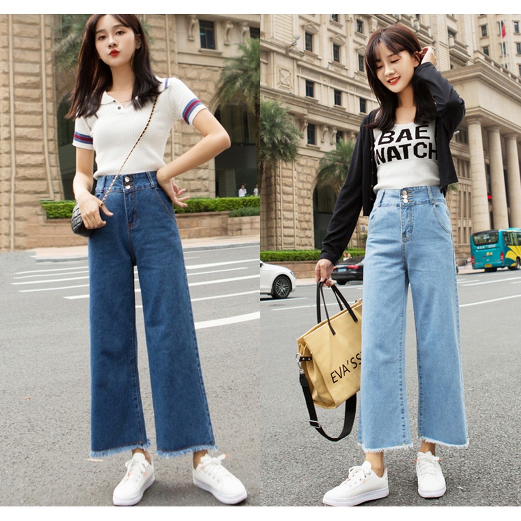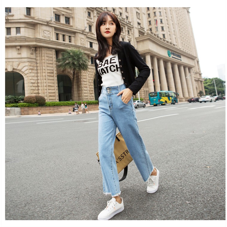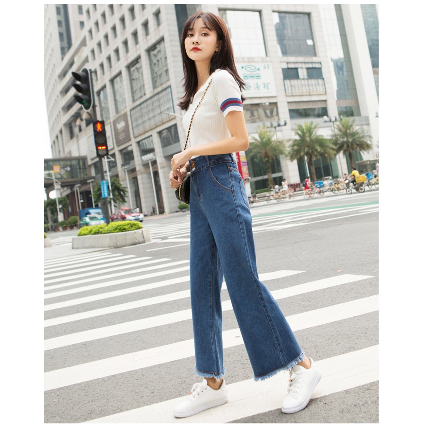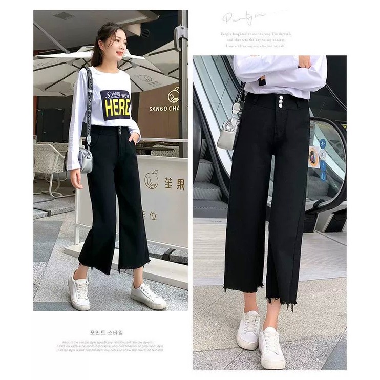 พร้อมส่ง กางเกงยีนส์ผู้หญิงแฟชั่น เอวสูง ทรงกระบอก ขาบาน ขาตัด มี 3 สี ไซส์(S-2XL)สวมใส่สบาย