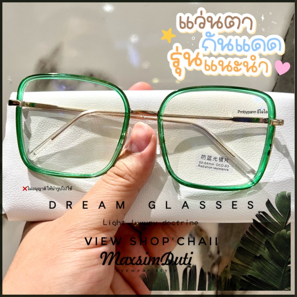 วัสดุพีเมี่ยม รุ่นDro217 แว่นตากรองแสง เลนส์บลูบล็อก Anti-Blue Radiation ทรงสี่เหลี่ยม