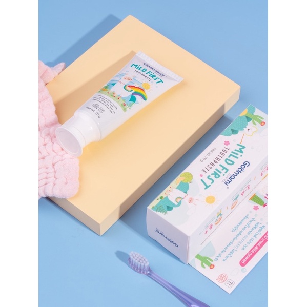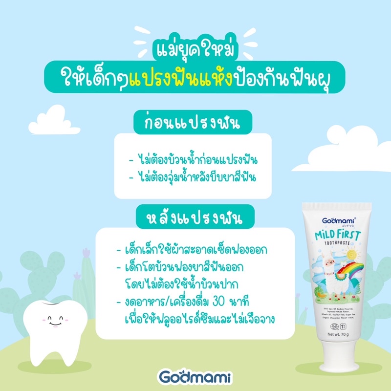 [ฟลูออไรด์ 1000 ppm แปรงแห้งได้] Godmami ยาสีฟันเด็กกลืนได้ ที่สามารถใช้ได้ตั้งแต่ฟันซี่แรก