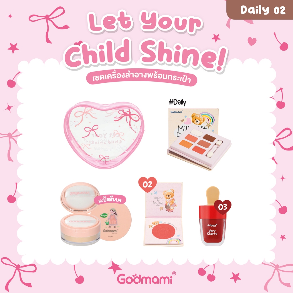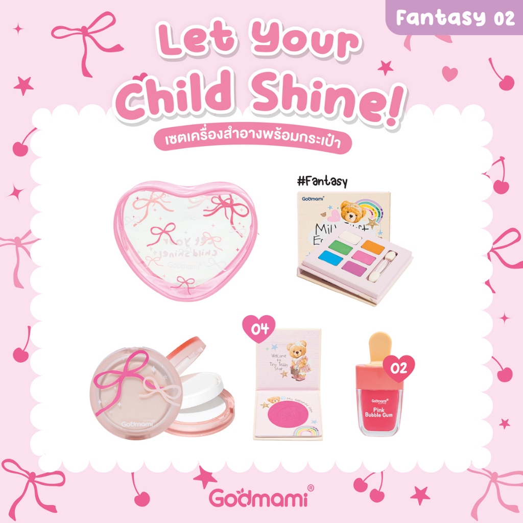 Godmami ชุดเครื่องสำอางเด็ก พร้อมกระเป๋าหัวใจกลิตเตอร์ Let your Child Shine!