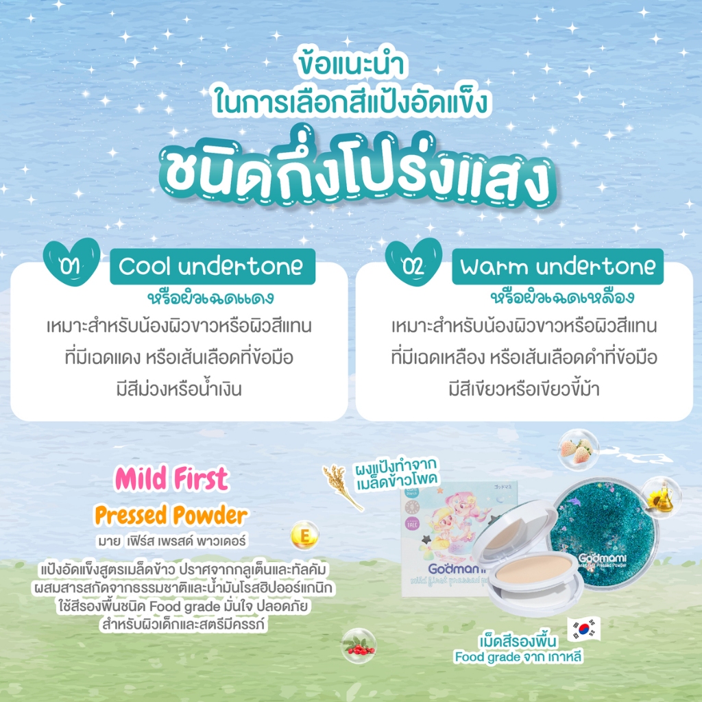Godmami แป้งอัดแข็งผสมรองพื้นอัดแข็งสำหรั บเด็กทำจากเมล็ดข้าว รุ่น มายด์เฟิร์ส เพรสด์พาวเดอร์