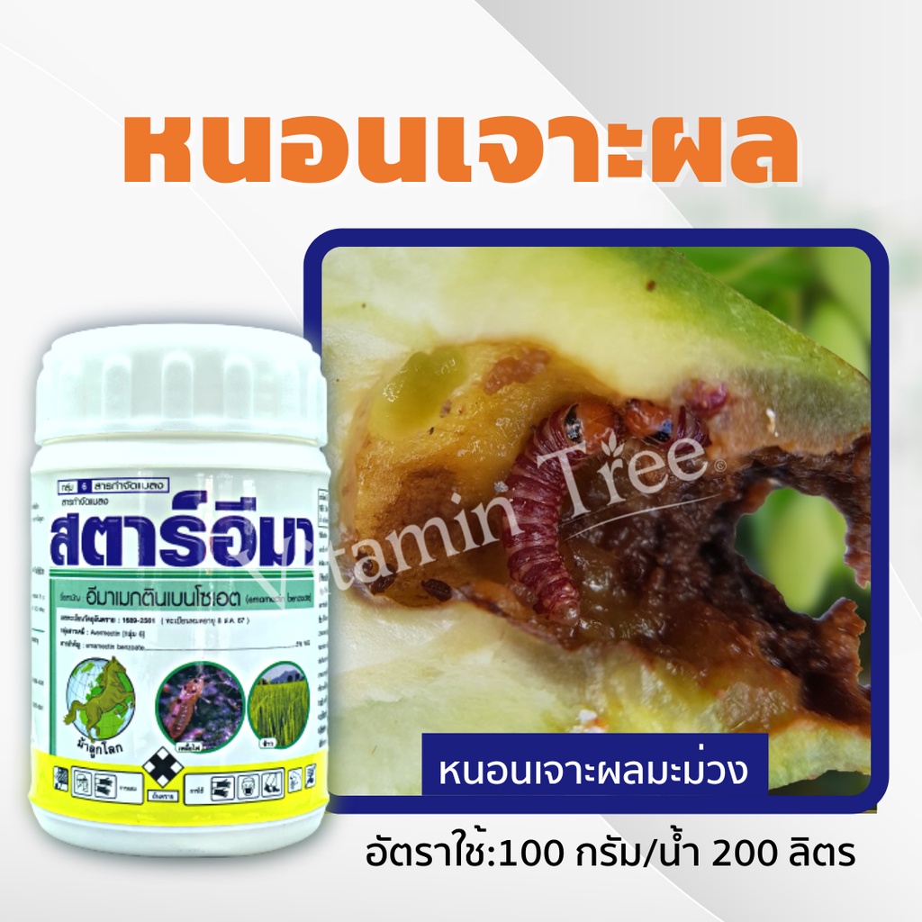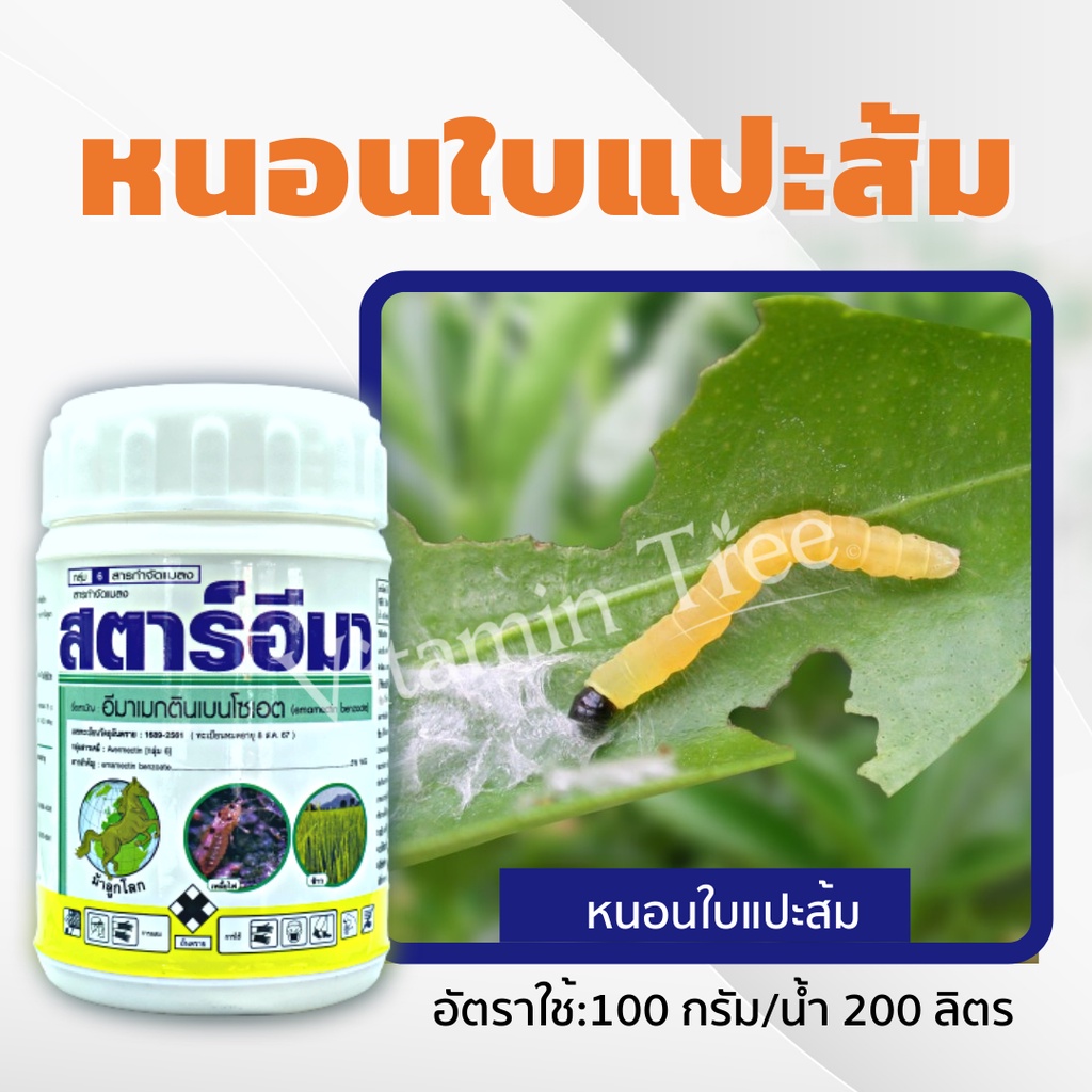 อีมาเม็กติน สตาร์อีมา 100กรัม ฆ่าหนอน เพลี้ยไฟ กำจัด หนอน ยาเย็น ยาผง ละลายน้ำดี อีมาเมกติน เบนโซเอต 5% WG