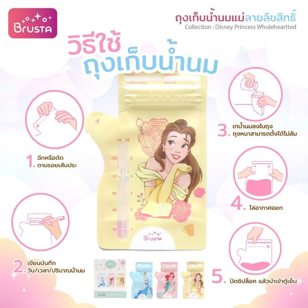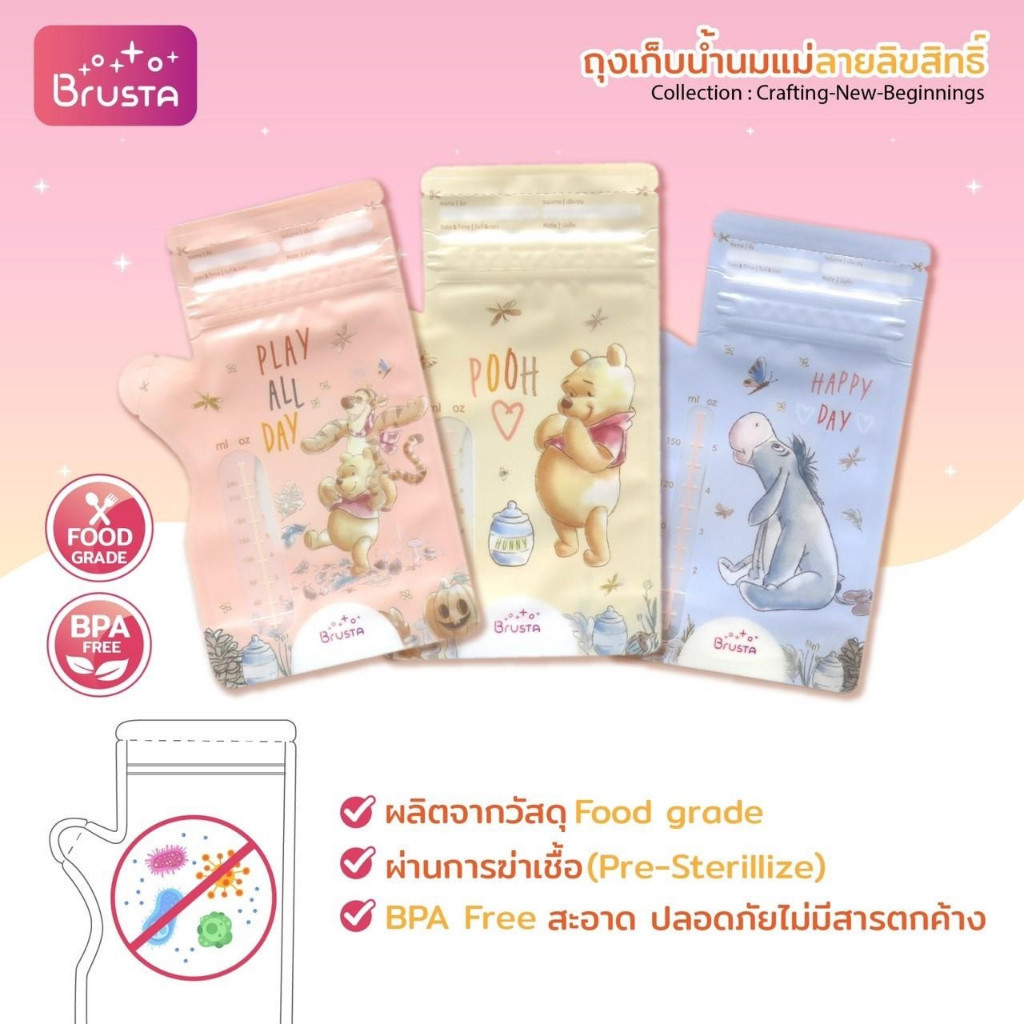 ถุงเก็บน้ำนม Winnie The Pooh / Disney Princess ลิขสิทธิ์แท้ Brusta ถุงหนา ไม่รั่วไม่แตก ลดกลิ่นหืน ลายน่ารักมาก