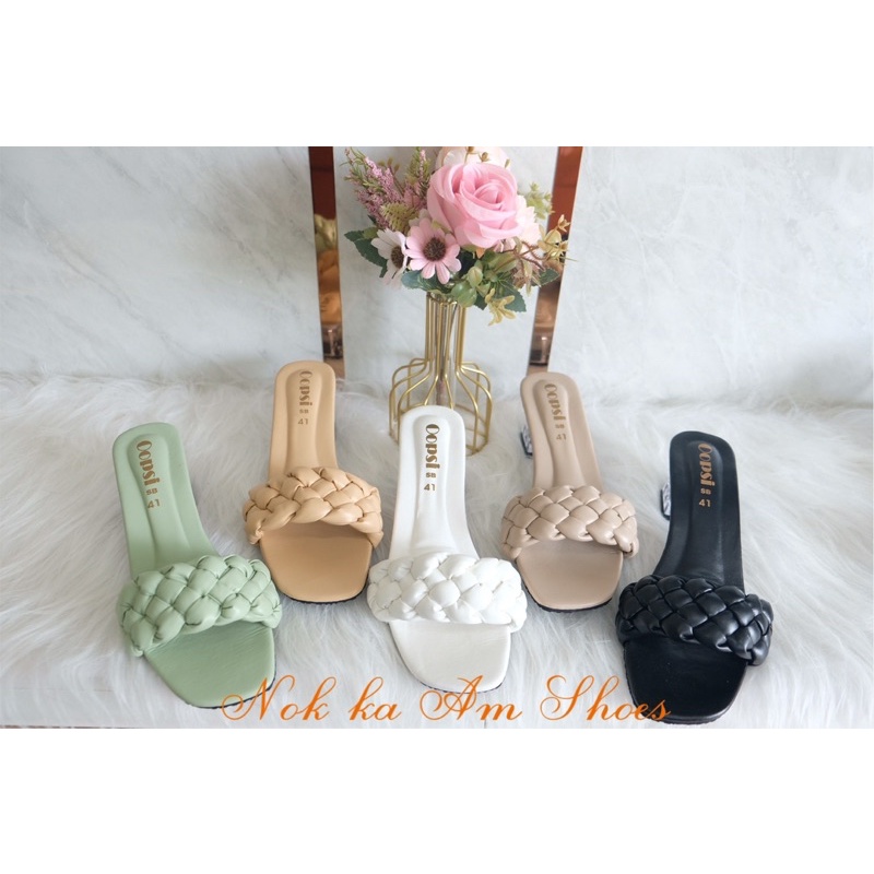 รองเท้าส้น 2 นิ้ว ไซร์ 36-45 งานถัก สวยเก๋มากคะ